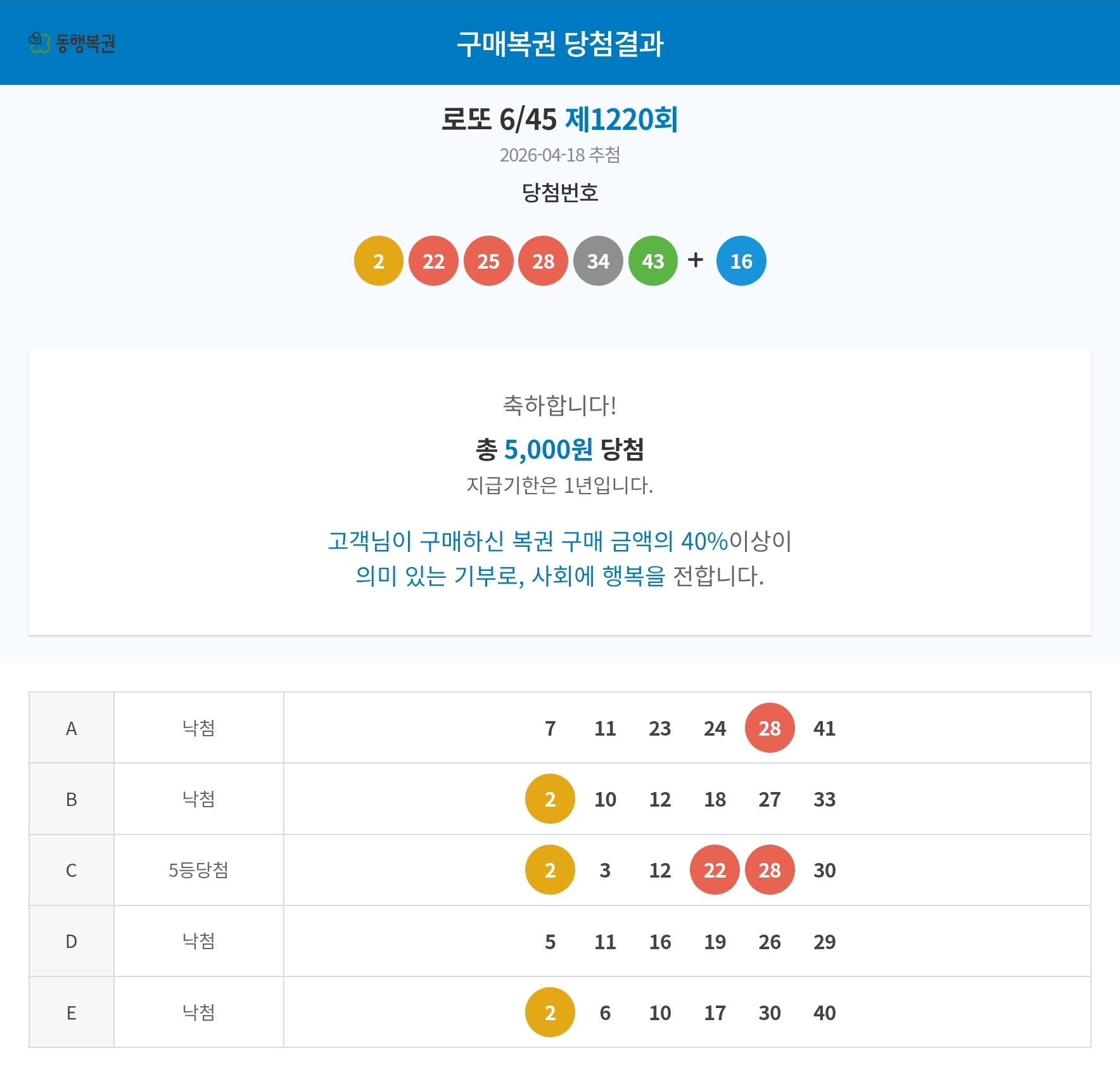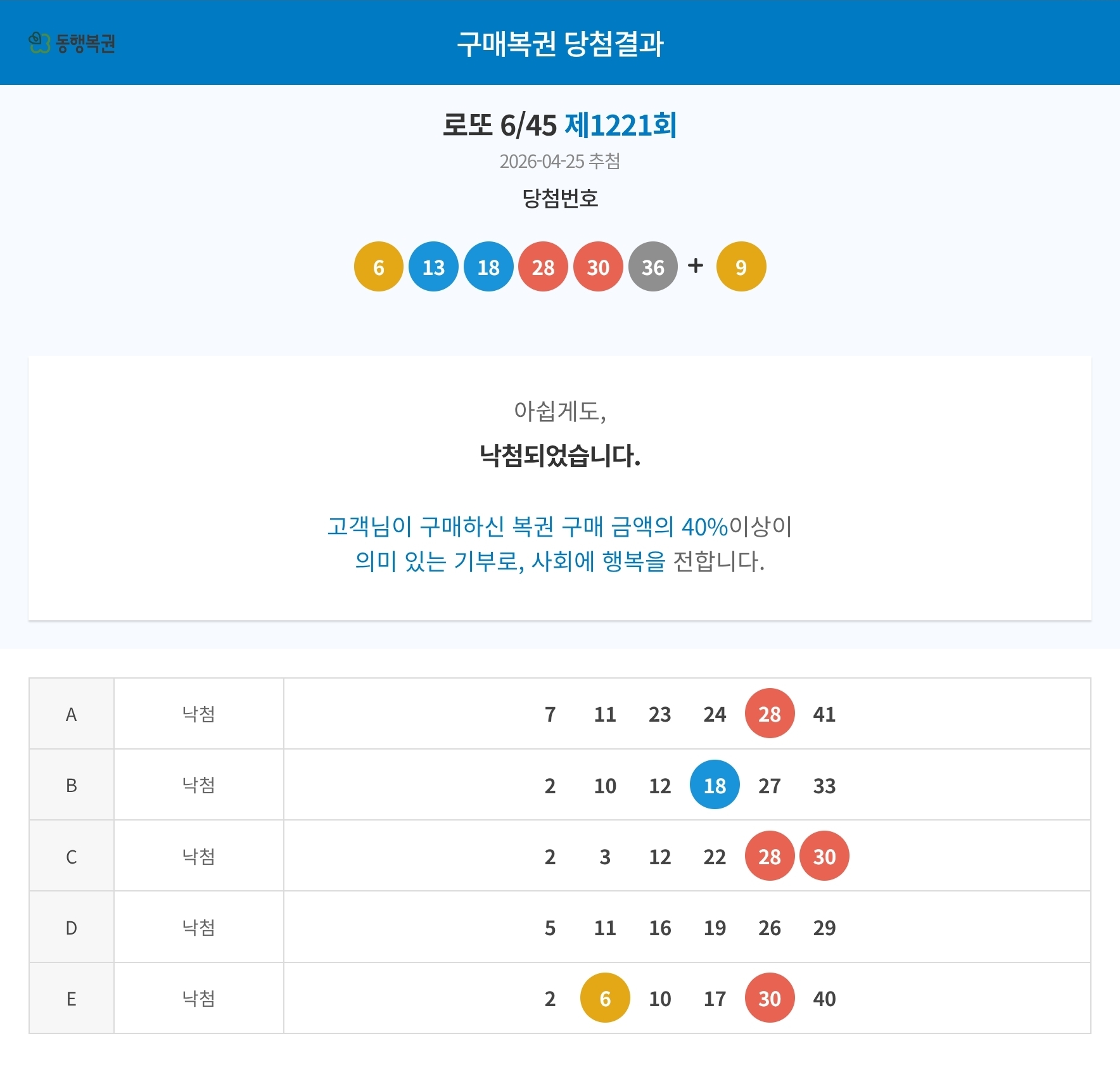 로또 - 26년4월29일 수rideg (79)in Korea • 한국 • KR • KO • 2 hours ago 1220회 로또 결과는 5천원 당첨이었습니다. 그래서 그 당첨금으로 1221회 로또를 구매했는데요. 두근두근~ 결과는 낙첨입니다. 많이 아쉽네요. 이번에는 1등 당첨될거 같은 기분이었거든요. 이번주 다시 1등 도전입니다. 고고씽~!! 202604290029 #krsuccess #zzan #liv #palnet #dblog #aaa #kr