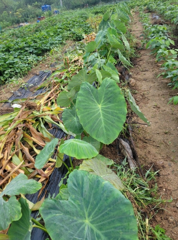 토란sidra12 (6)in Korea • 한국 • KR • KO • 5 years ago 처음으로 토란을 심었다. 토란은 별로 좋아하지 않았지만 지인이 먹던 토란에 싹이 났다며 전철을 타고가지고 오신 성의를 생각해서 심었다. 토란은 쑥쑥 잘크고있다. 토란을 맛있게 먹는 방법을 배워야 겠다. 이른아침에 밭에가보니 곡식과 풀들이 비가와서 몰라보게 크고있다. 고기가 물 만난격이다 오늘도 하늘은 울상 빗방울이 뚝뚝 딸어진다