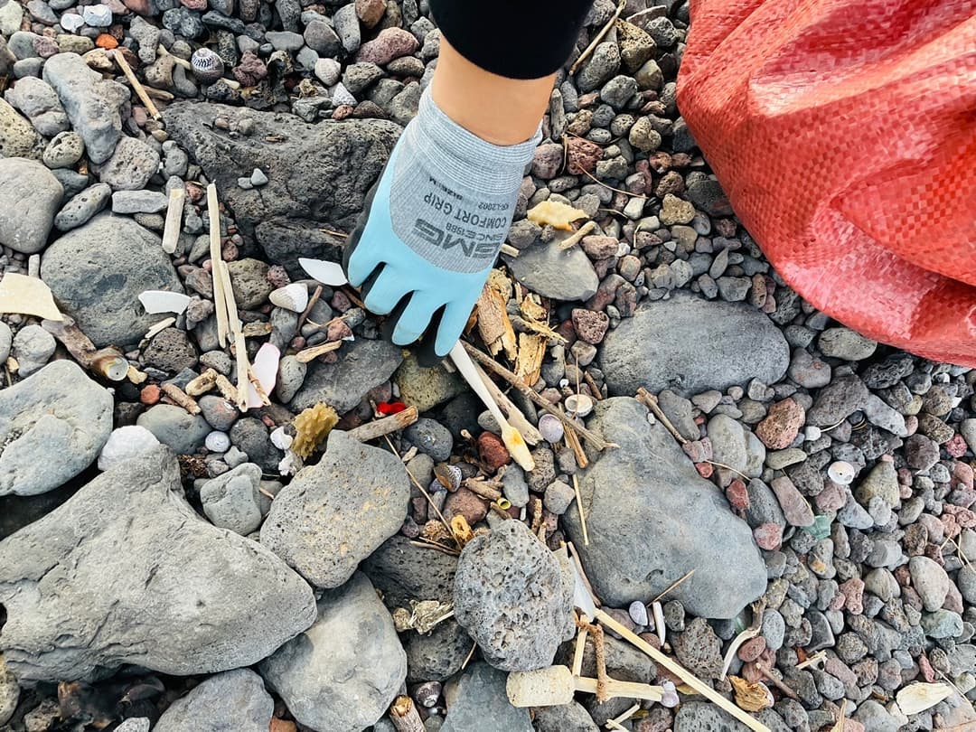 아침 일찍 바닷가에서 쓰레기를 주웠어요!