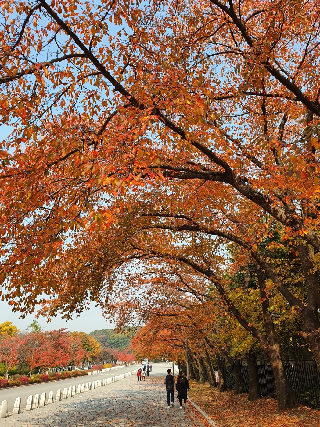 쌓인 낙엽을 밟으며 걸으니 더욱 매력적입니다.