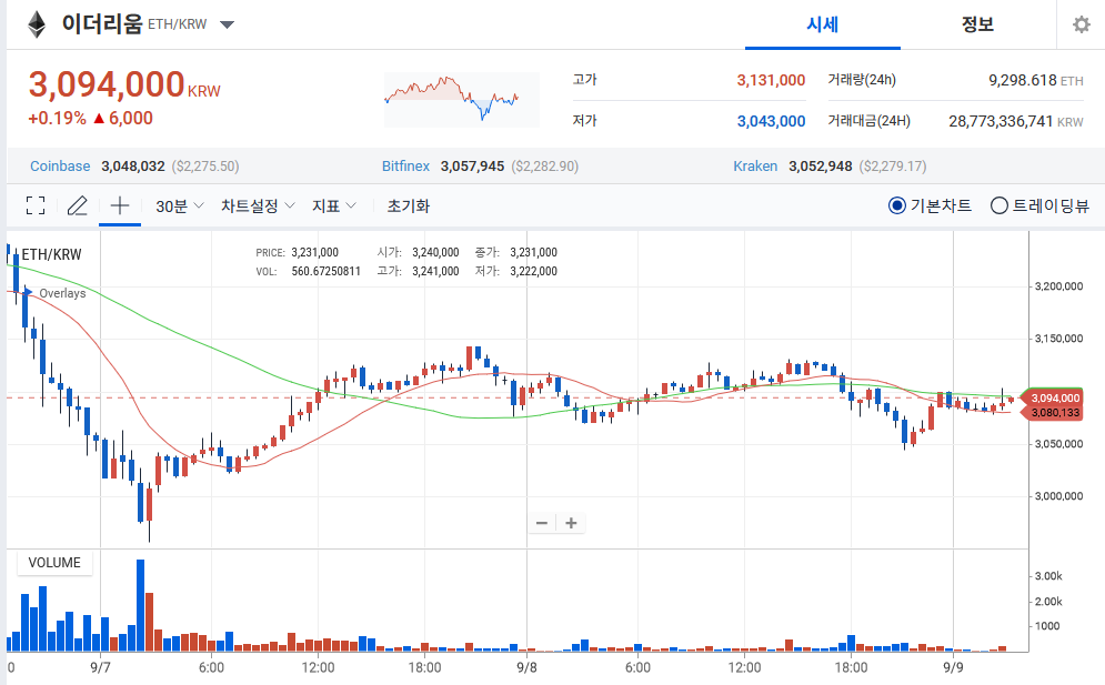 현재 ETH 가격은 약 3,094,000원입니다.