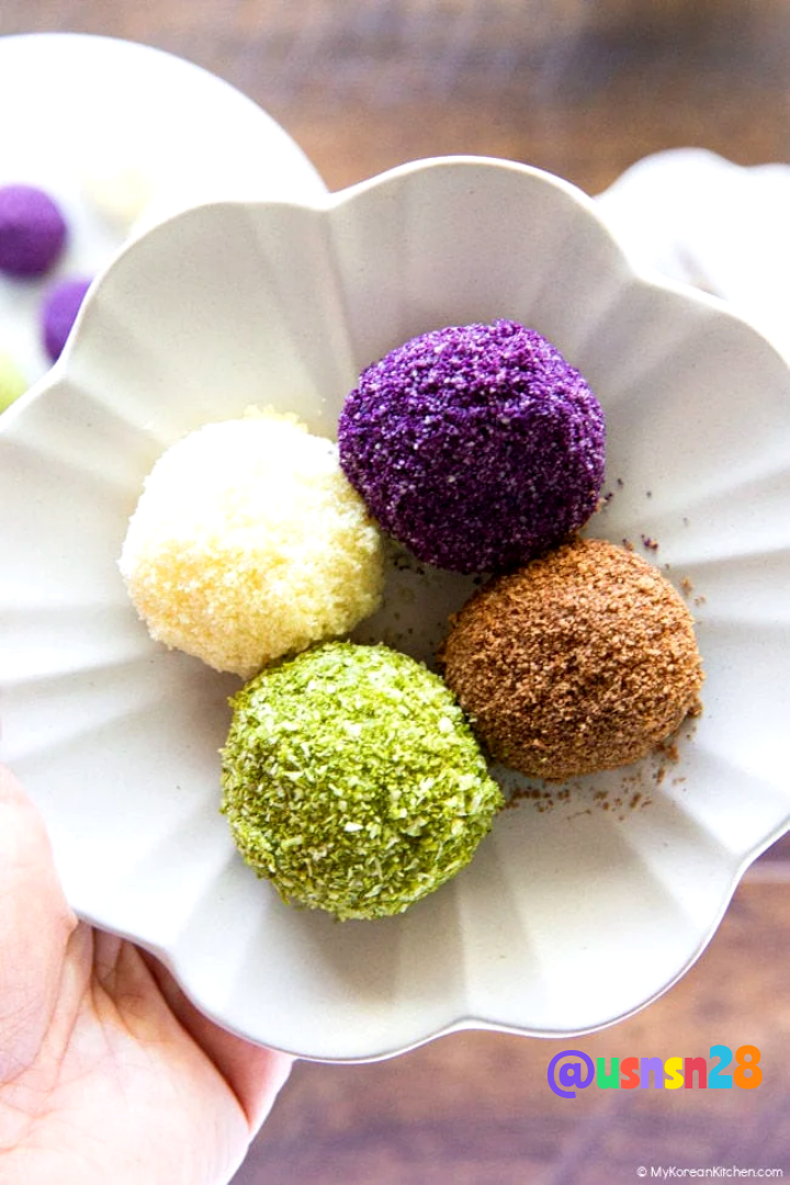 경단 (한국식 달콤한 떡) 집에서 만든 레시피