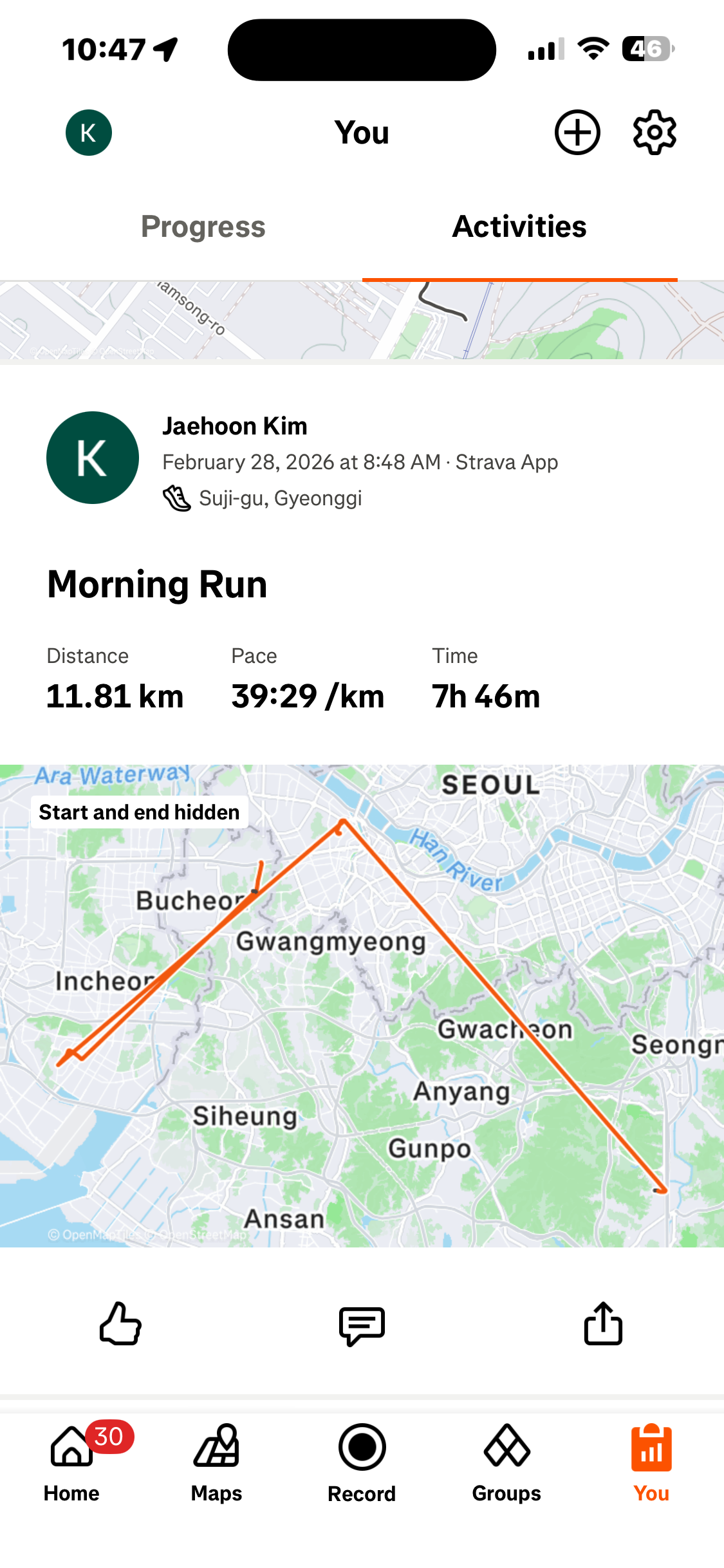 [2026년 2월 28일] 어제의 운동 11.81km걷기(목표 10km)