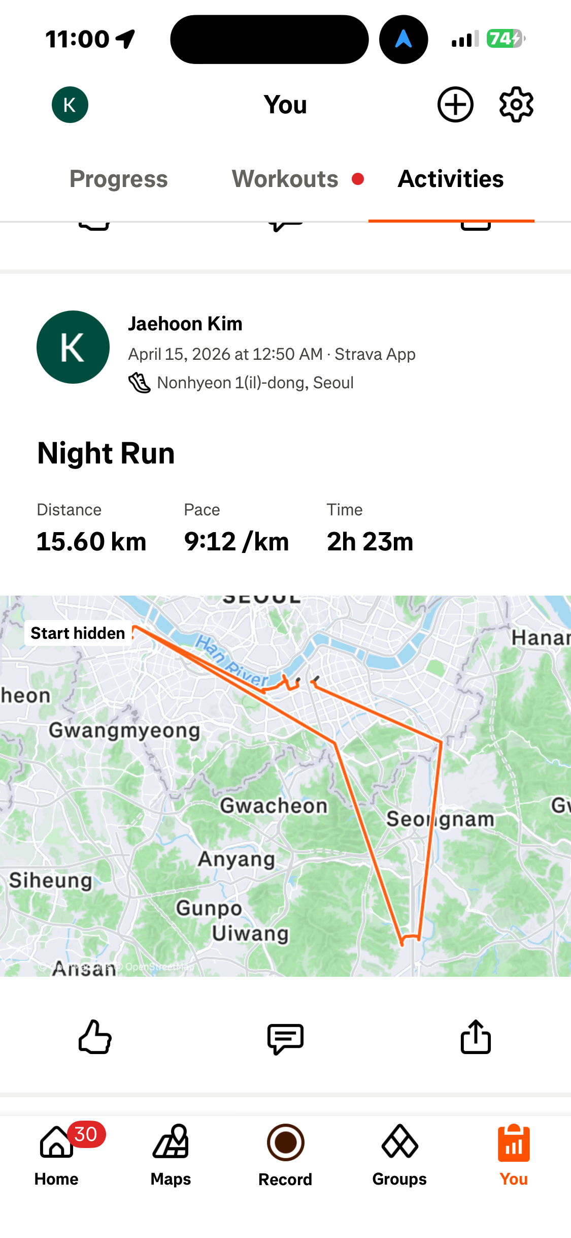 [2026년 4월 15일] 어제의 운동15.6km걷기(목표 10km)