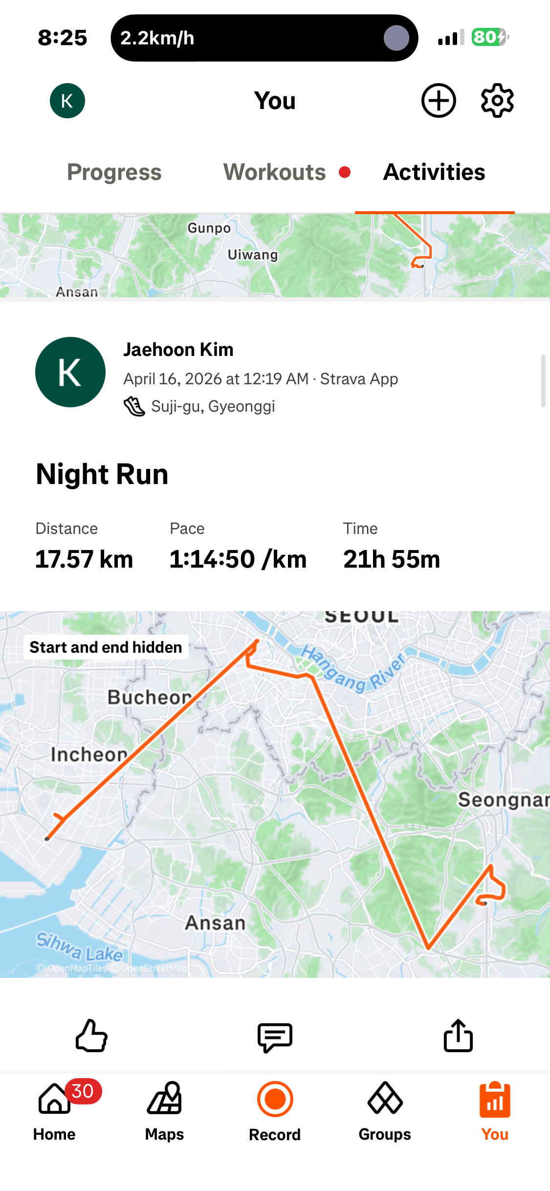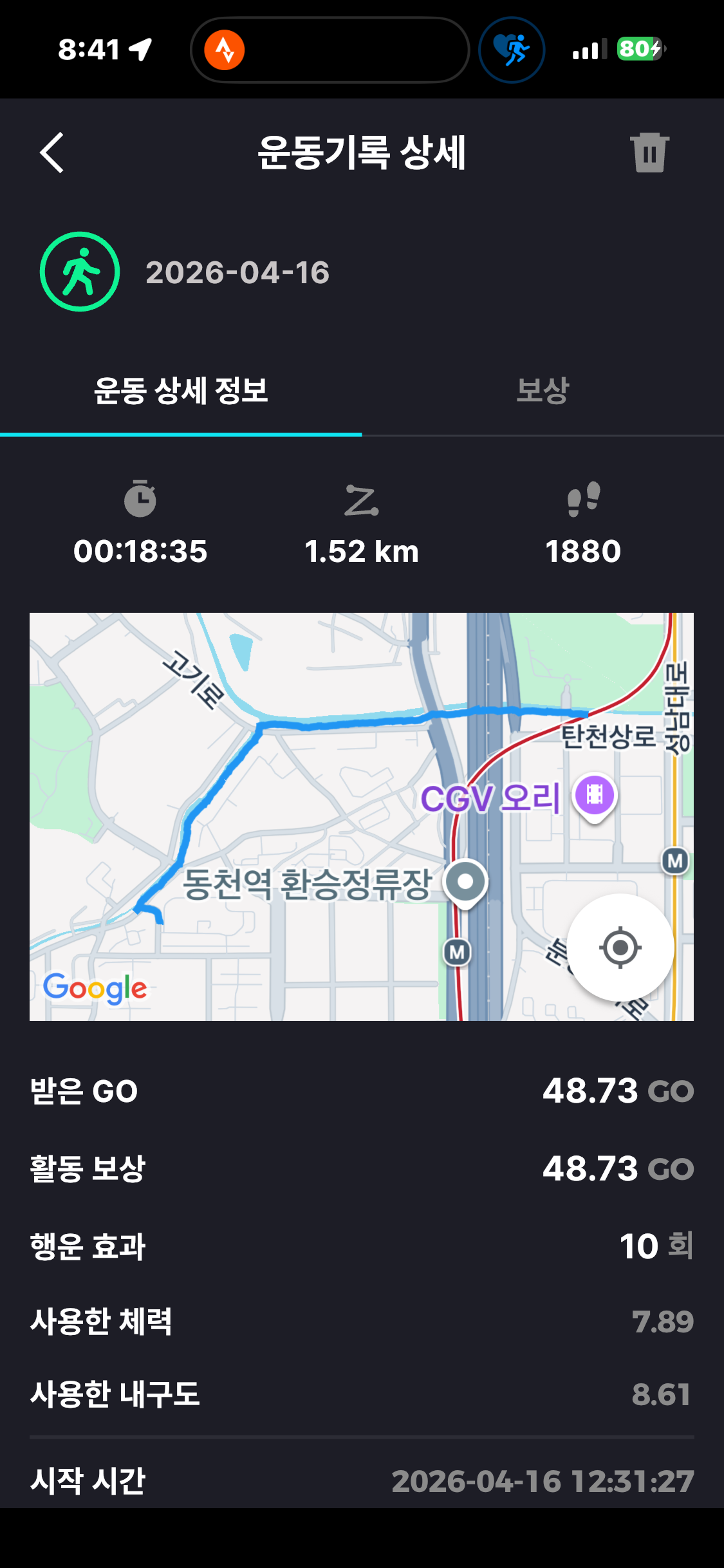 [2026년 4월 16일] 어제의 운동 17.57km걷기(목표 10km)