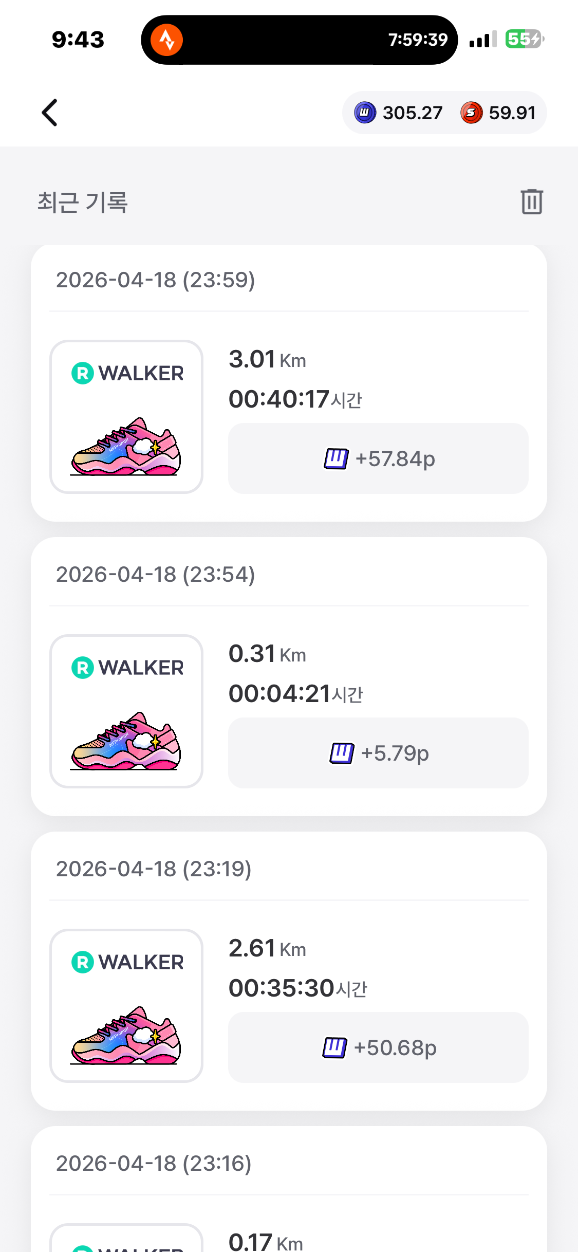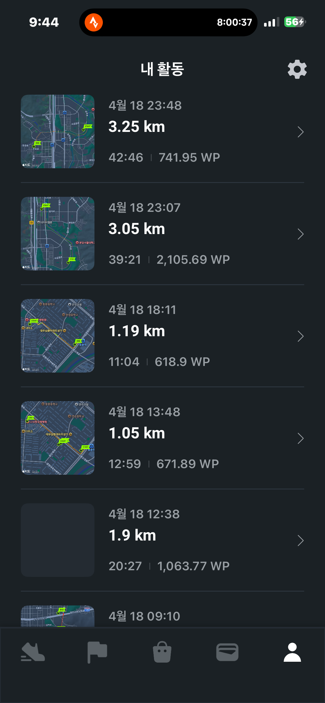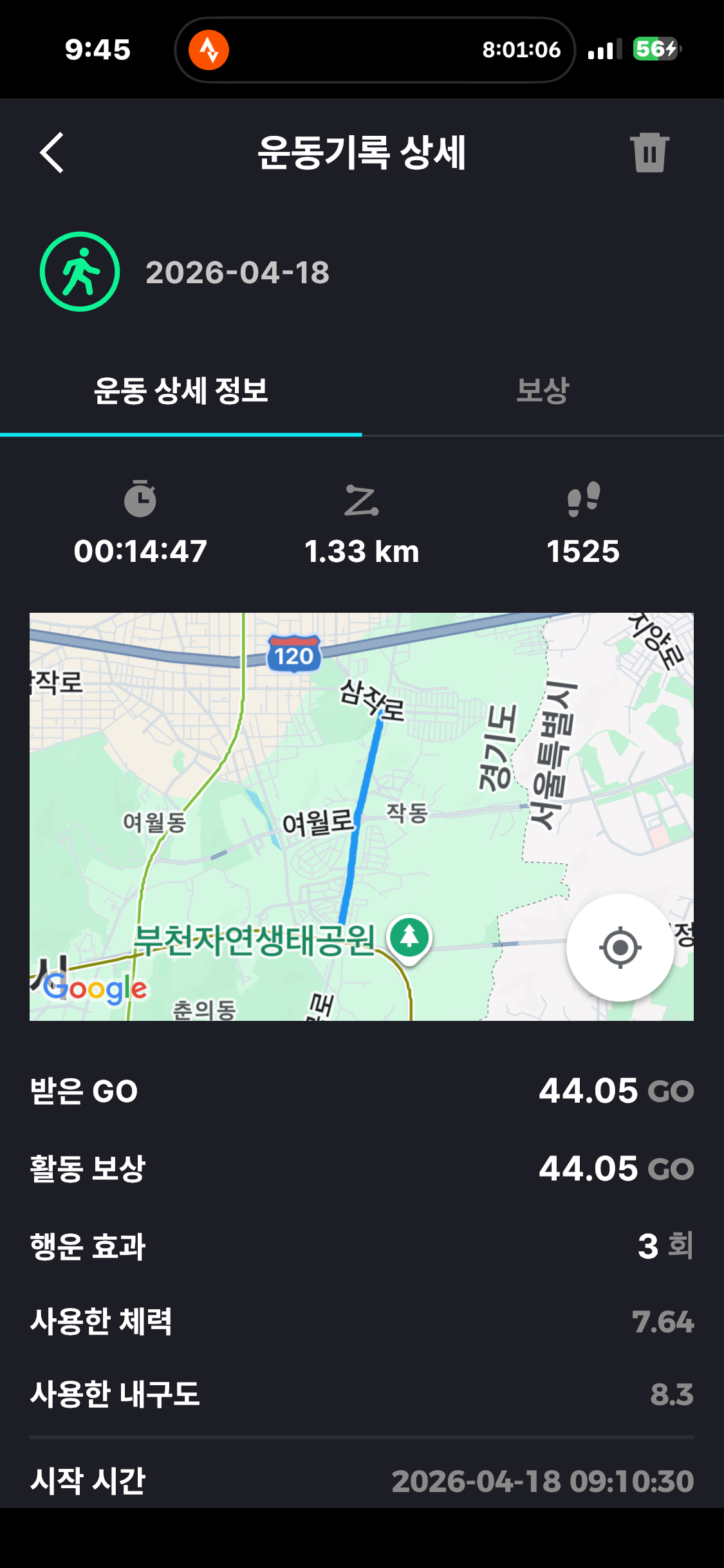 [2026년 4월 18일] 어제의 운동 20.74km걷기(목표 10km)