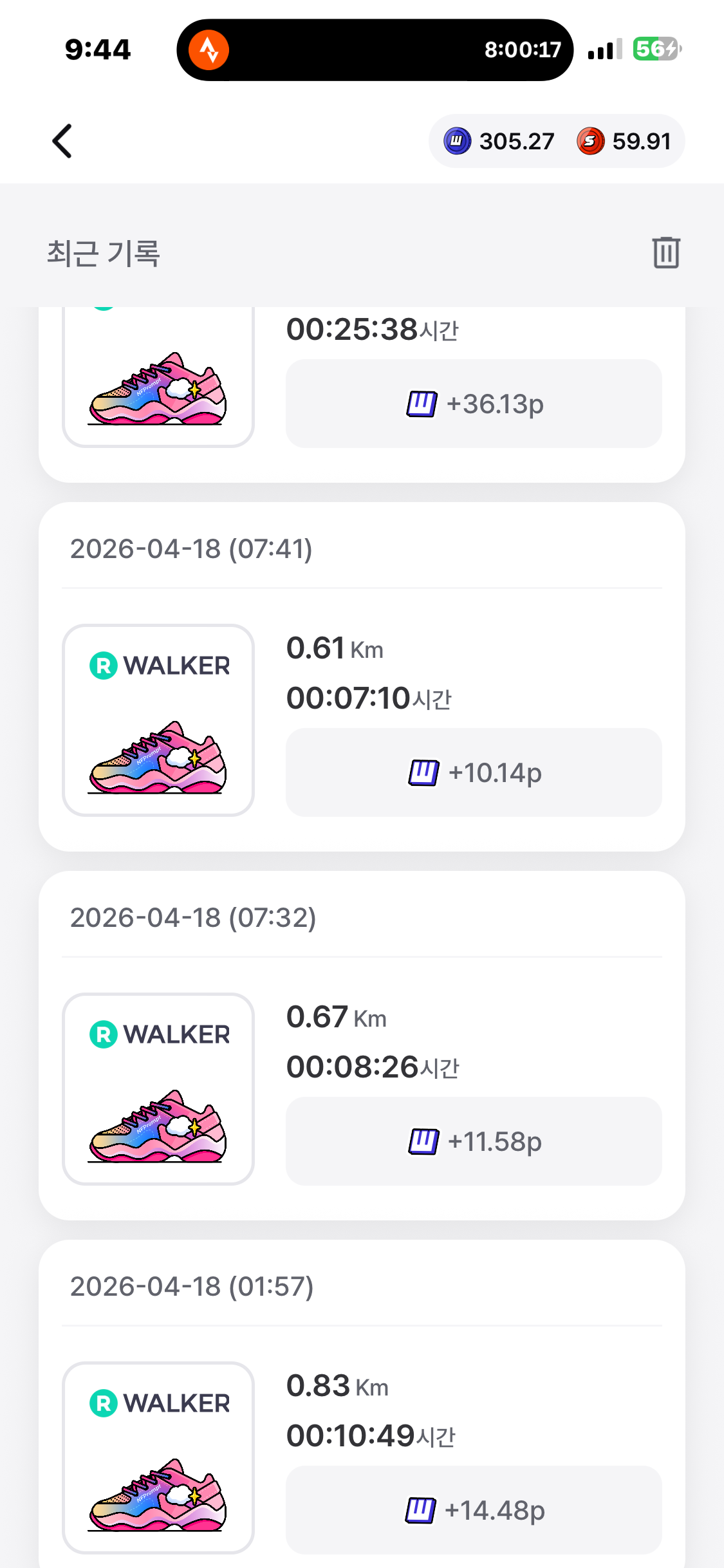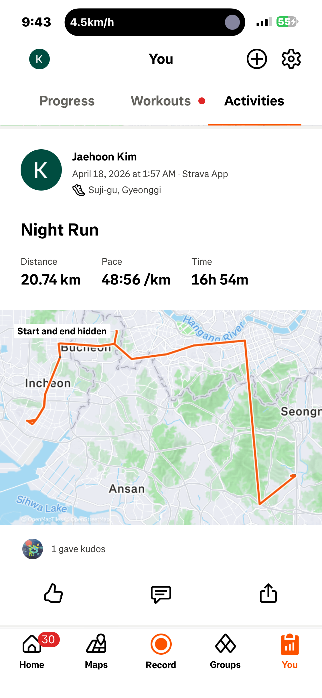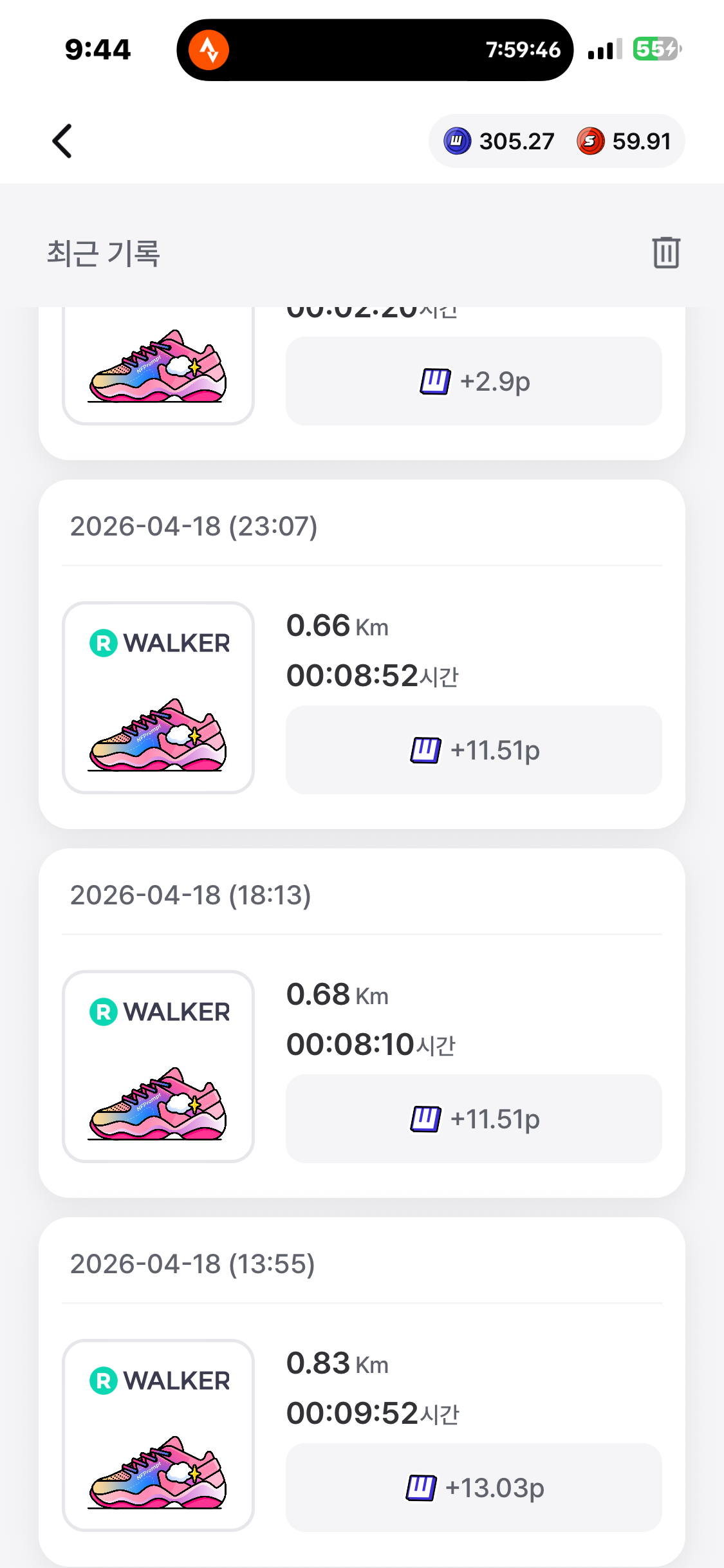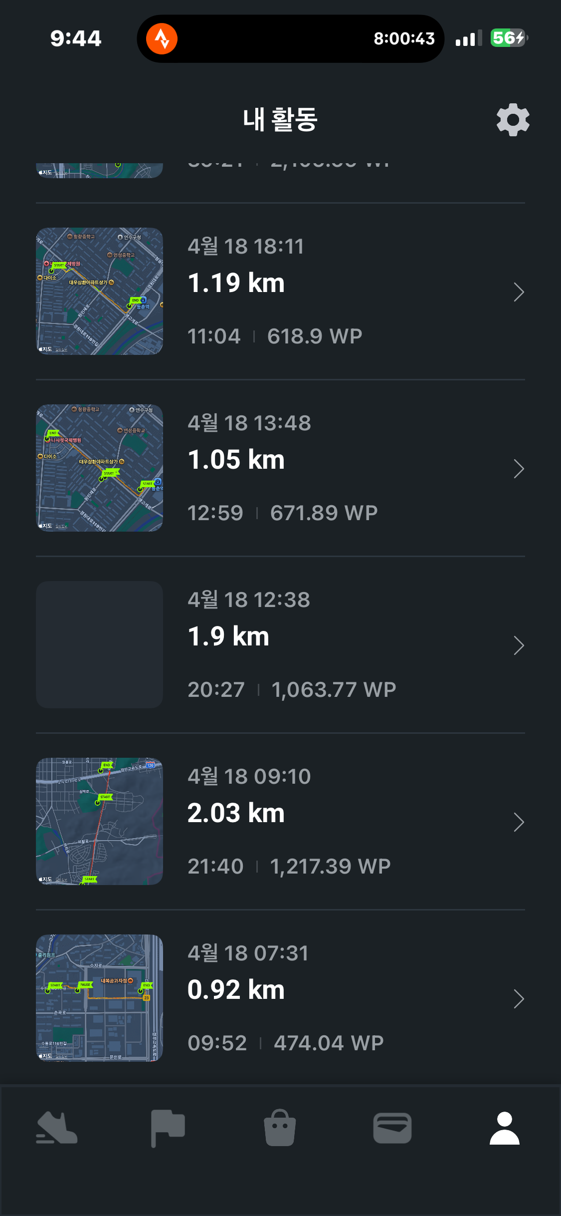 [2026년 4월 18일] 어제의 운동 20.74km걷기(목표 10km)