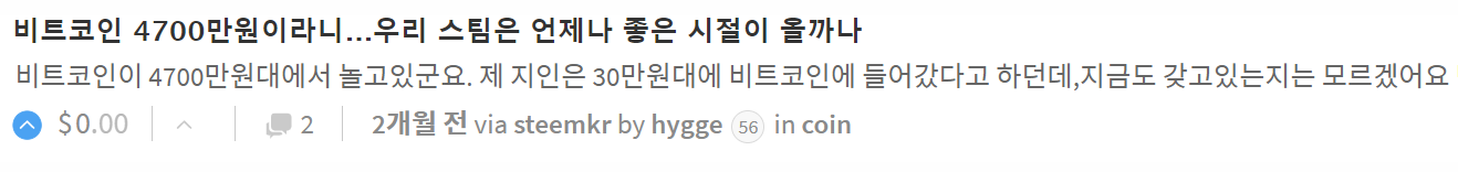 두달앞을 못내다보는 한심한 안목이라니...hygge (56)in #korea • 5 years ago 불과 두달전 쓴 글인데....이때라도 비트코인 들어갔다면 수익이 얼매야 ㅜㅜ 정말 가상화폐는 한치앞도 못 내다보는 코린이의 한숨입니다. 스팀달러가 올라간것 보고도 참 놀라게 되네요 정확하게 제가 판 가격에서 10배가 올라서요.... 모두들 스팀으로 부자되세요 #coin #steemdollar #culture #information