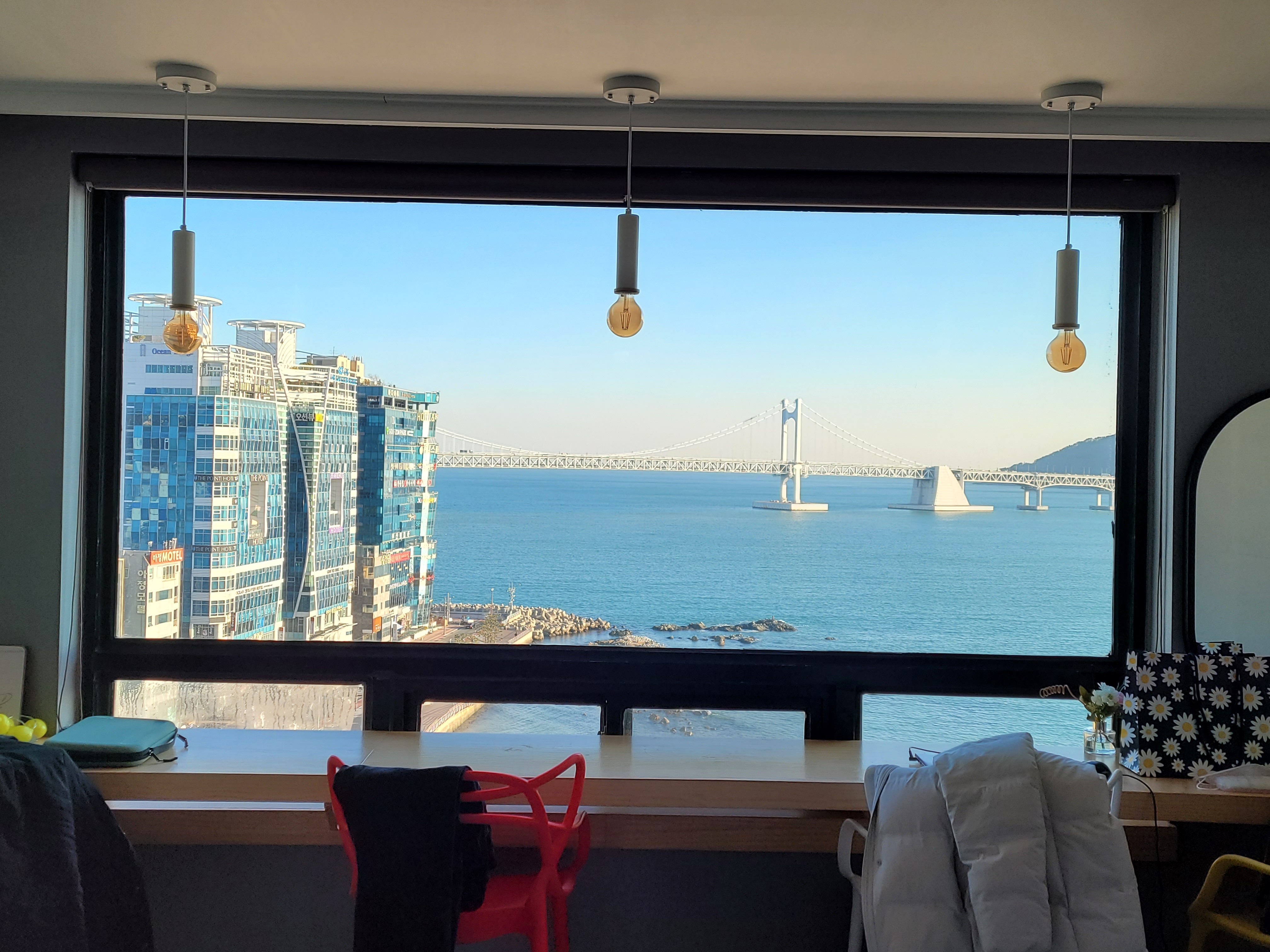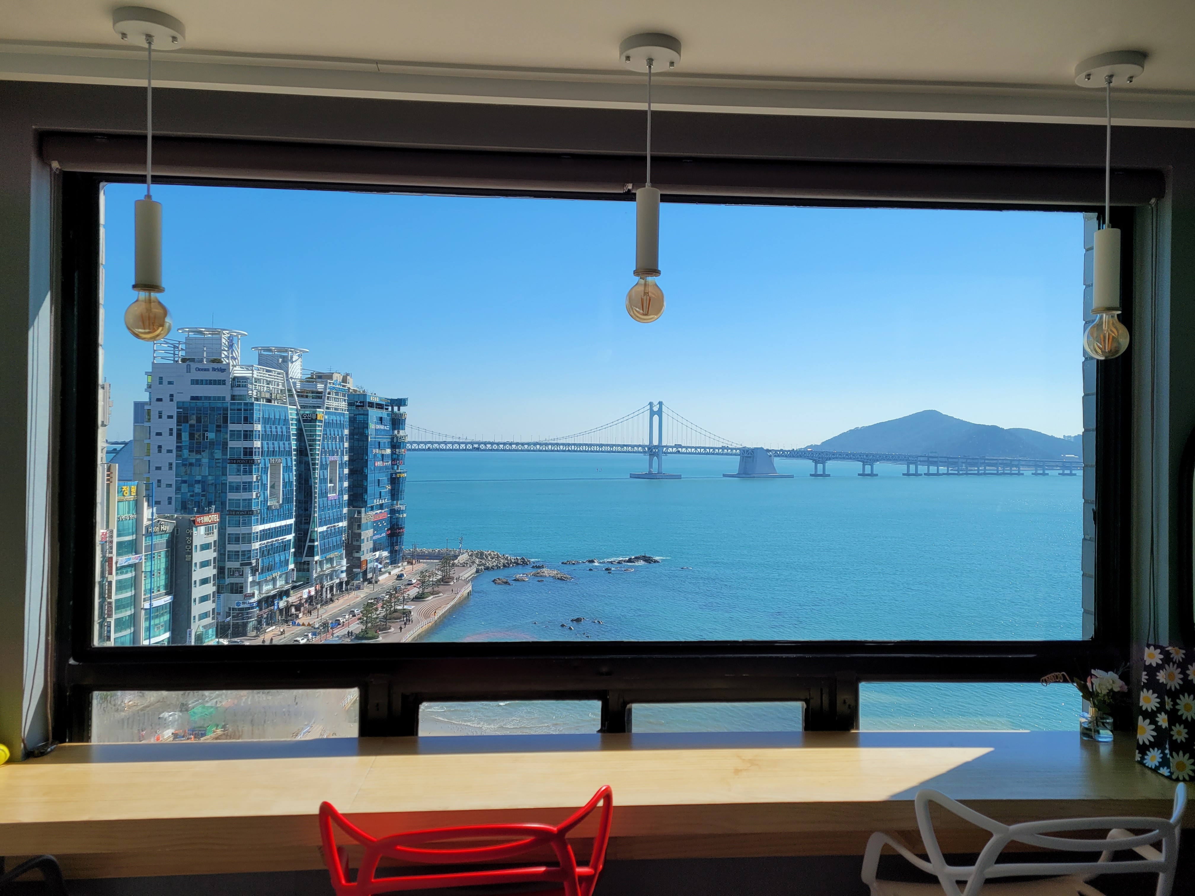 From the windownorthsouthone (53)in #korea • 5 years ago Fabulous view of Gwangalli Beach from where we stayed. It's like a live picture frame~ 🕙Morning 🕛 Midday 🕘Night 🕖 Dawn heading to Morning #busan #photos #gwangalli #beach #beautiful