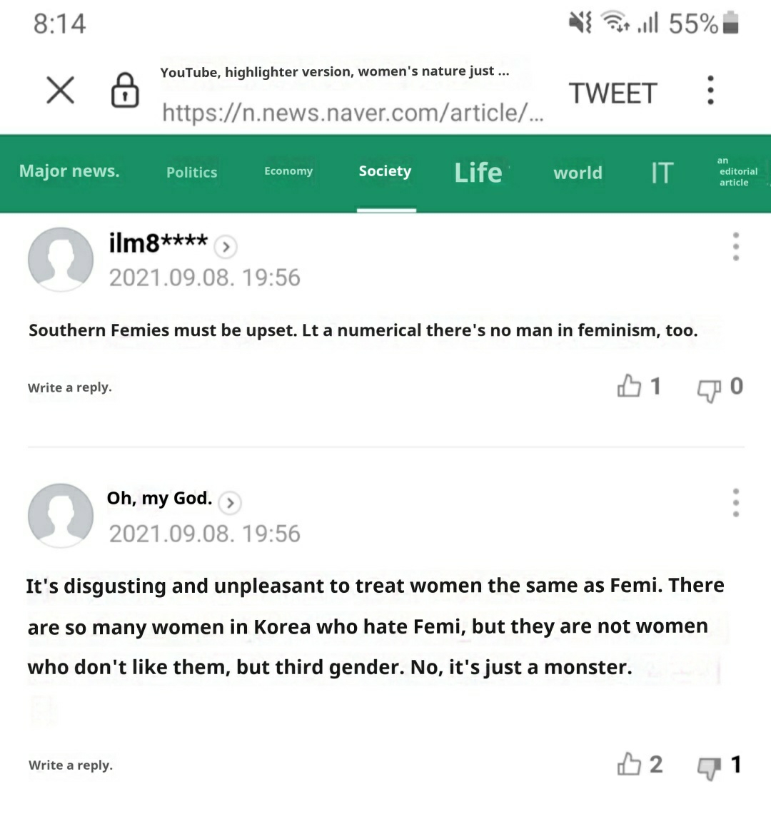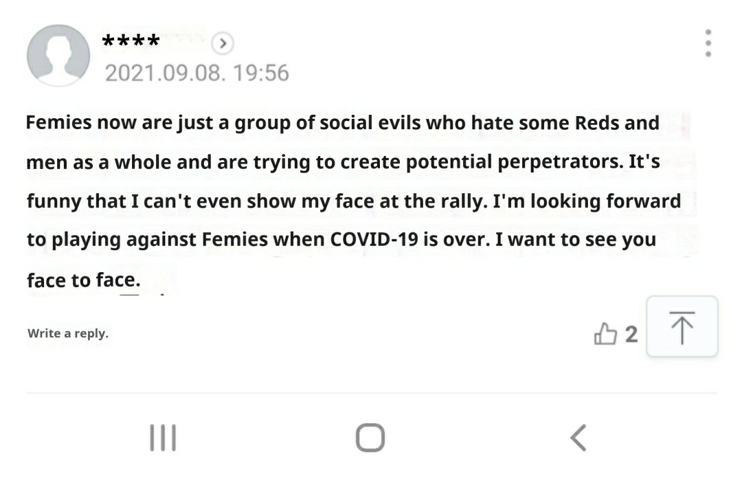 Korean feminists are still under attack by everyone This photo is a translation of a Korean tweet.