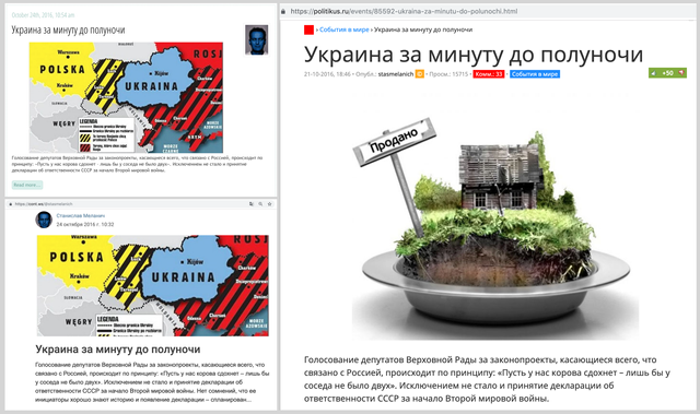 러시아인의 목표가 사회적, 정치적 분열을 만드는 것이 었음을 의심 할 여지가 없습니다. 지정 학적 상황은 전 세계 언론에 존재하는 허위 정보가 확산되는 발상지가되었습니다. 여기 몇 가지 예가 있어요.