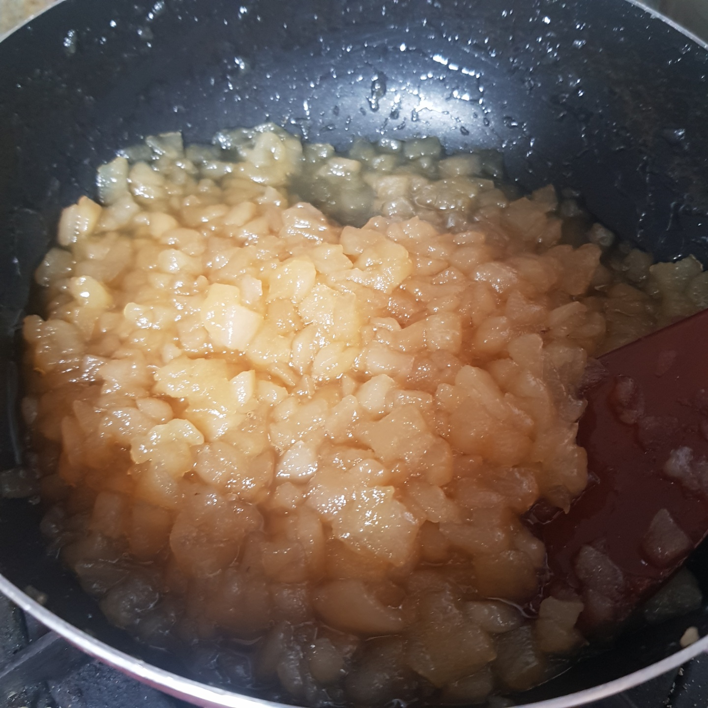 배를 다 썰었으면 큰 웍에 넣고 센 불에 졸인다. 여기에 설탕은 준비한 배의 50%만 넣는다. 센 불로 설탕이 모두 놓고 배가 투명해질 때까지 볶는다. 배가 투명해지면 중불로 계속 졸여준다. 이 때 레몬즙을 두 바퀴 정도 돌려주면 방부제 역할을 해줘 오래 두고 먹을 수 있다. 원하는 농도가 될 때까지 졸여주면 완성이다.