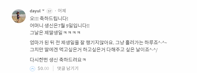 진짜 어머니도 놀랐네요 ㅎㅎㅎㅎ 저희 어머니 생신은 7월9일입니다.