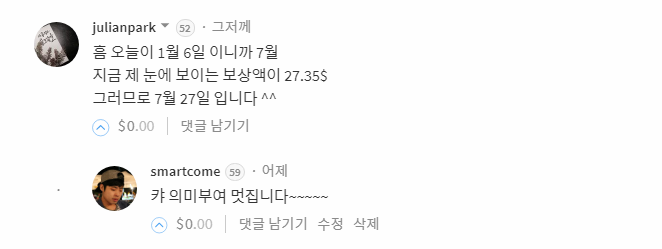 사실 1$보팅이 별거 아니지만 그냥 당첨되면 기분이라도 잠시 좋으시지 않을까요...ㅎㅎㅎ