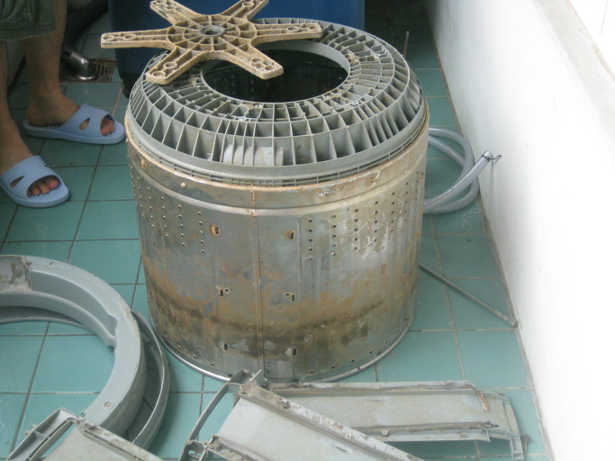 빨래를 집어넣고 돌리는 세탁기의 내부통은 위의 사진처럼......늘 물, 세제 그리고 옷과의 마찰로 겉으로 보기에 매끈매끈합니다.