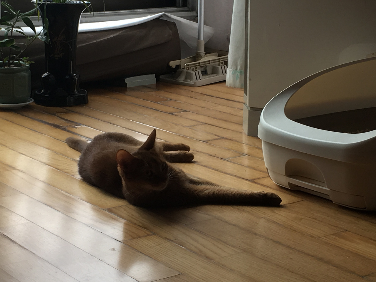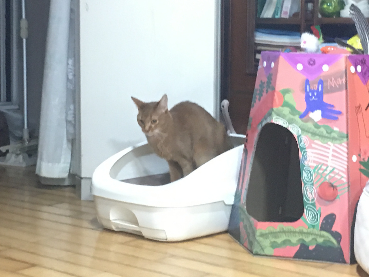 그리고 드디어 달콤이가 화장실에 갔습니다. 정말 걱정 많이 했거든요. 이러다가 몹쓸 변비에라도 걸려버릴까 걱정하고 있었습니다. 화장실을 유심히 탐색하더니 들어가서 일을 봅니다. 여태 불편한 마음에 참고 있었을 것을 생각하니 조금 가슴 아프지만 이제 자유롭게 갔으면 좋겠다고 생각합니다.