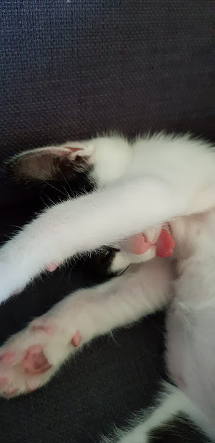 오뎅꼬치로 놀아주면 500번정도 해야 잠시 쉽니다. ㅠㅠ 에너지가 너무 많아요. 낮에 사람이 있으면 잠도 잘 안잡니다. 그래서 끊임없이 키키를 쫓아다니며 꼬리를 물고 다리를 걸고 날다람쥐처럼 키키를 덮치고 합니다.