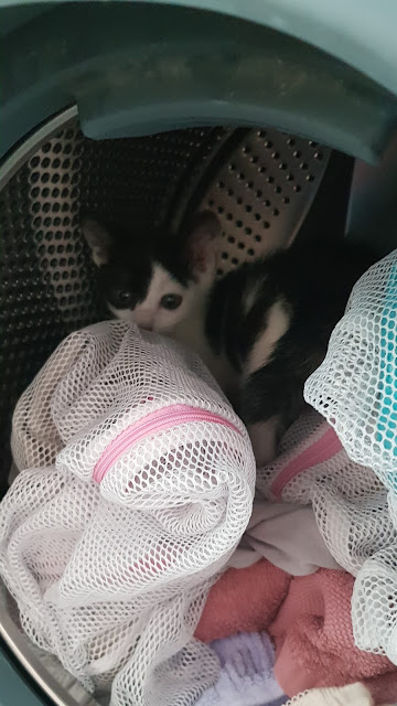 어제 잠시 나머지 빨래를 가지러 간사이에 세탁기에 들어가 있네요.