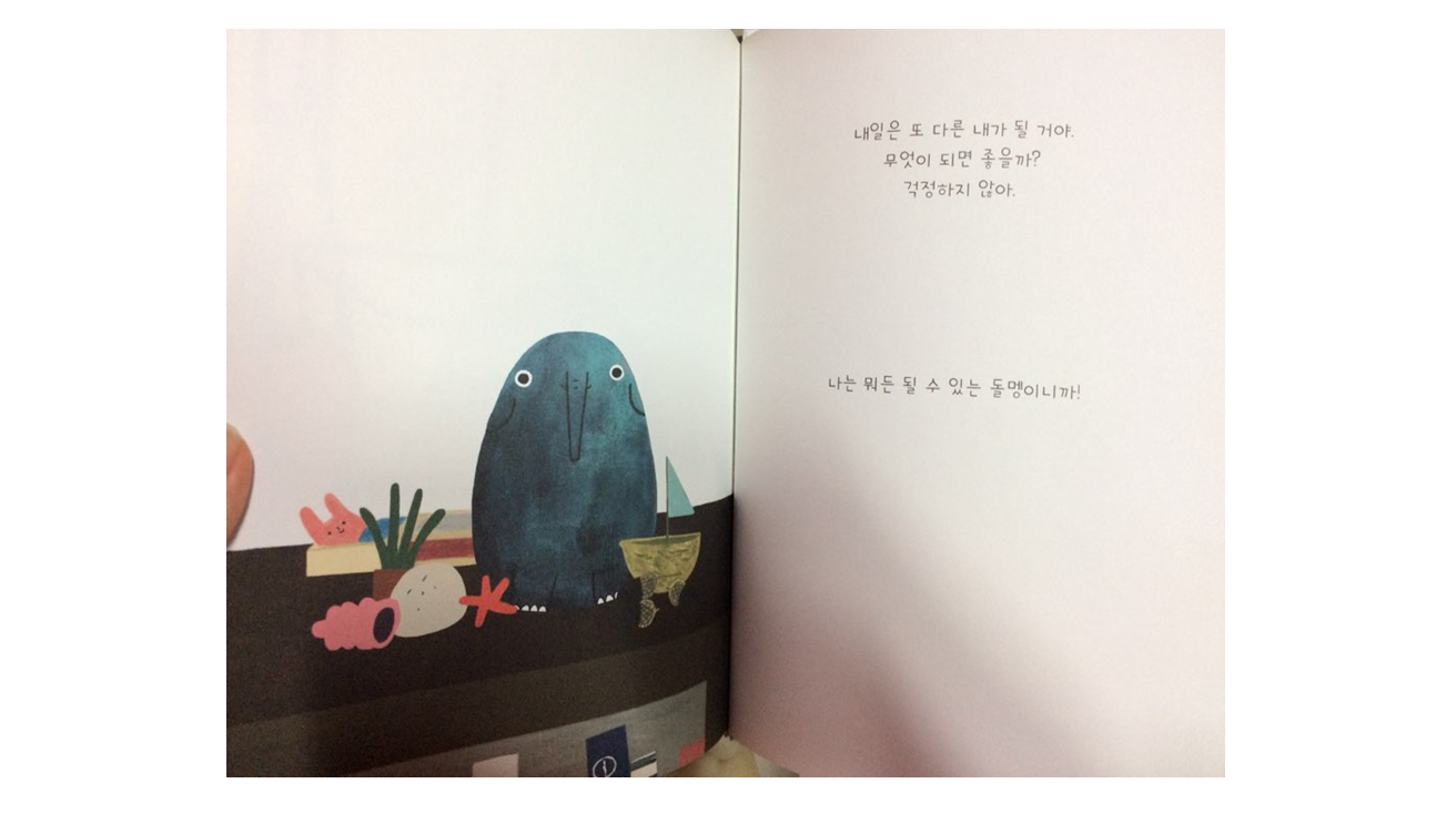 처음엔 뭐야, 이 돌멩이? 싶었는데 읽다 보니 능청스러울 정도로 긍정긍정한 그 모습이 귀엽고 배우고 싶기도 하더라구요ㅎㅎㅎ 쑥쑥 자라나라 긍정파워!!