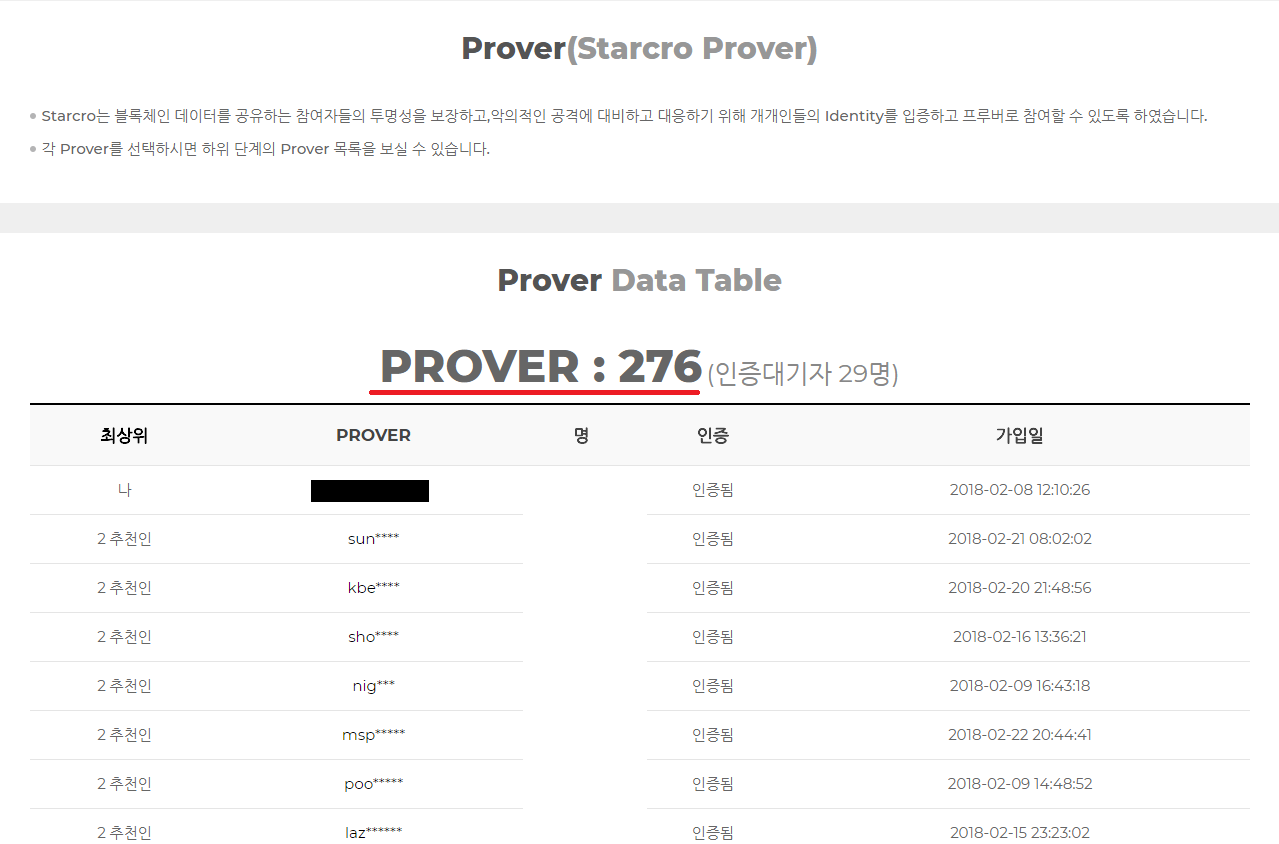 저는 현재 약 276명의 Prover를 보유하고 있는데요!