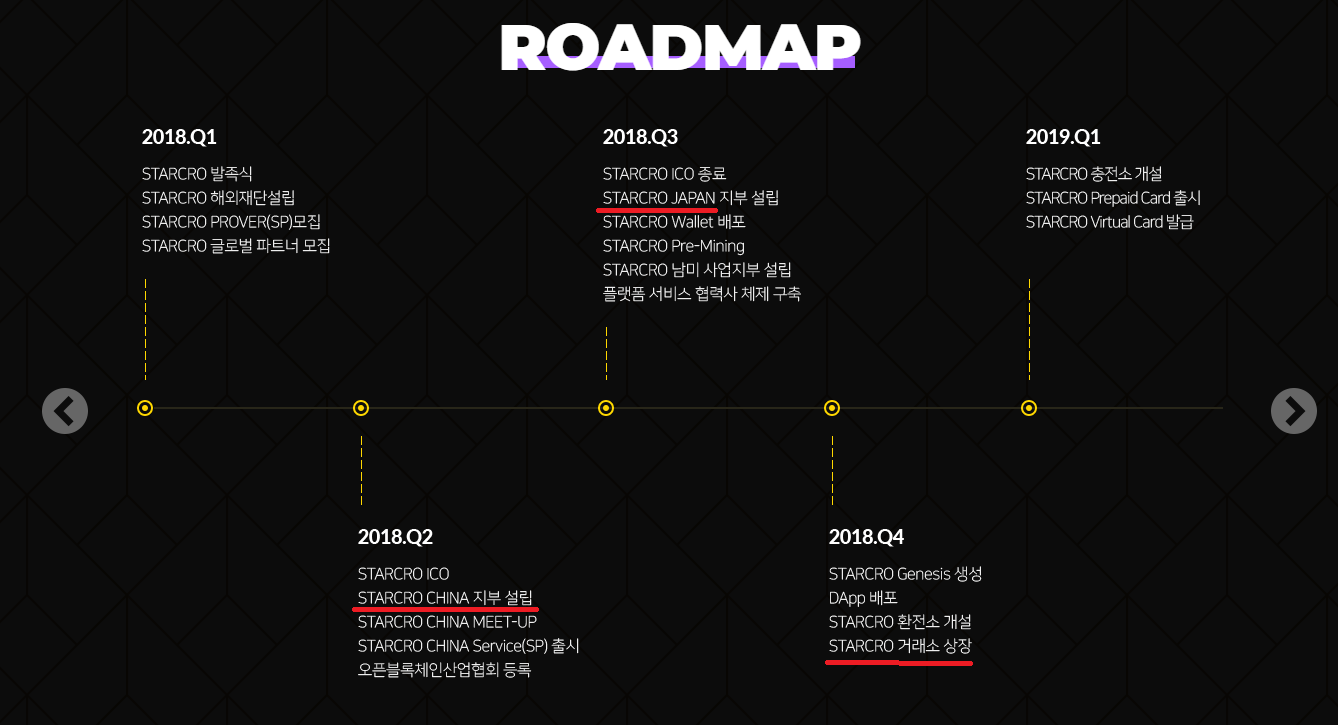 스타크로 로드맵입니다! 2018년 중에 거래소 상장을 준비하고 있습니다.