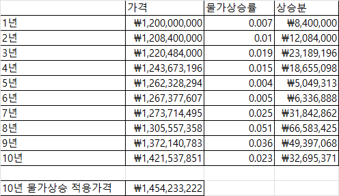 우선 10년동안 가격이 어느정도 오르는게 불로소득(?)인지