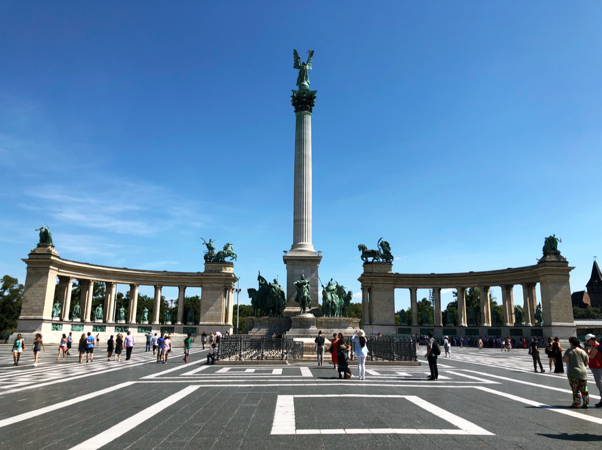 페스트 지구 제일 끝자락에 위치한 영웅광장에서 투어 시작합니다앙! 🚃