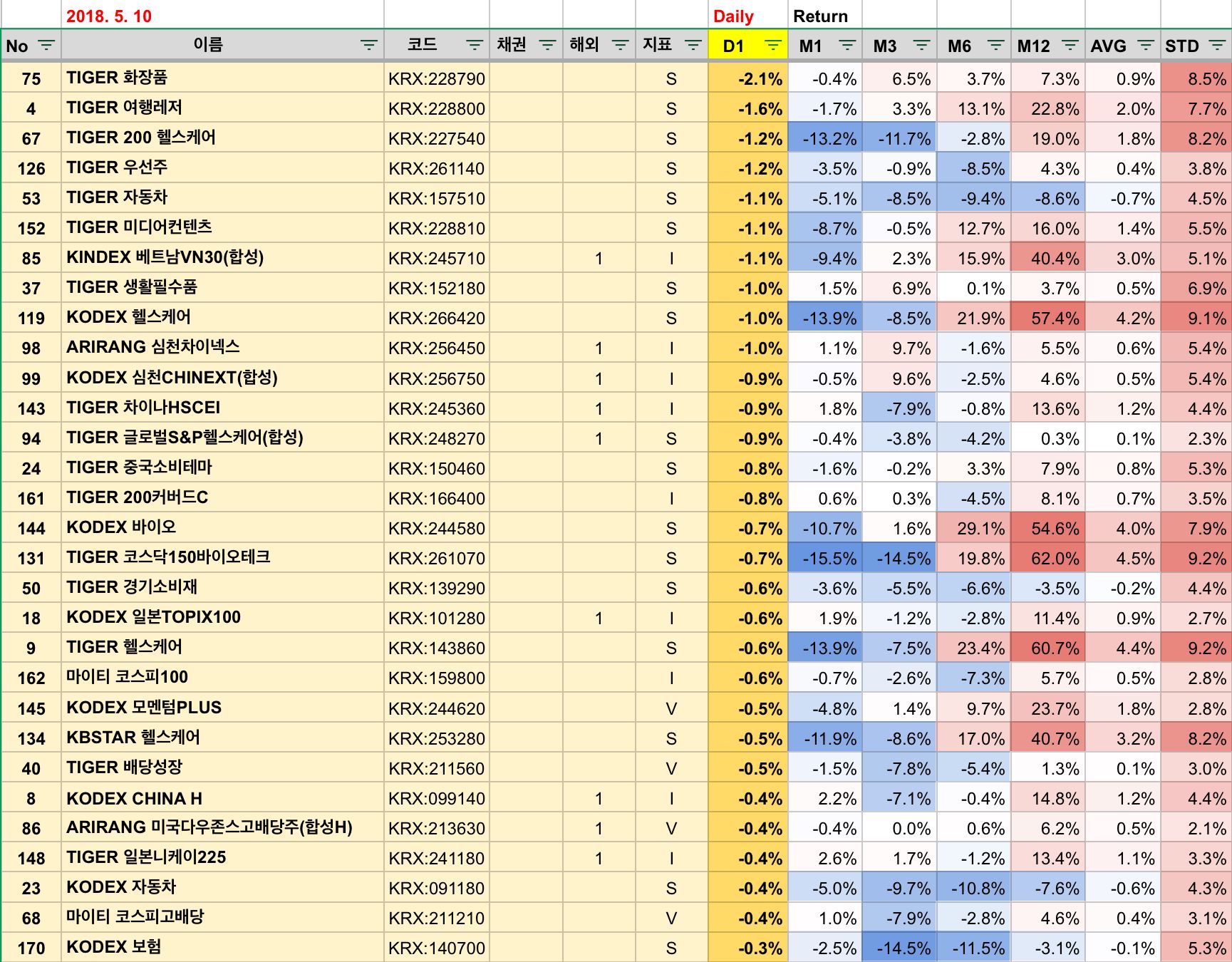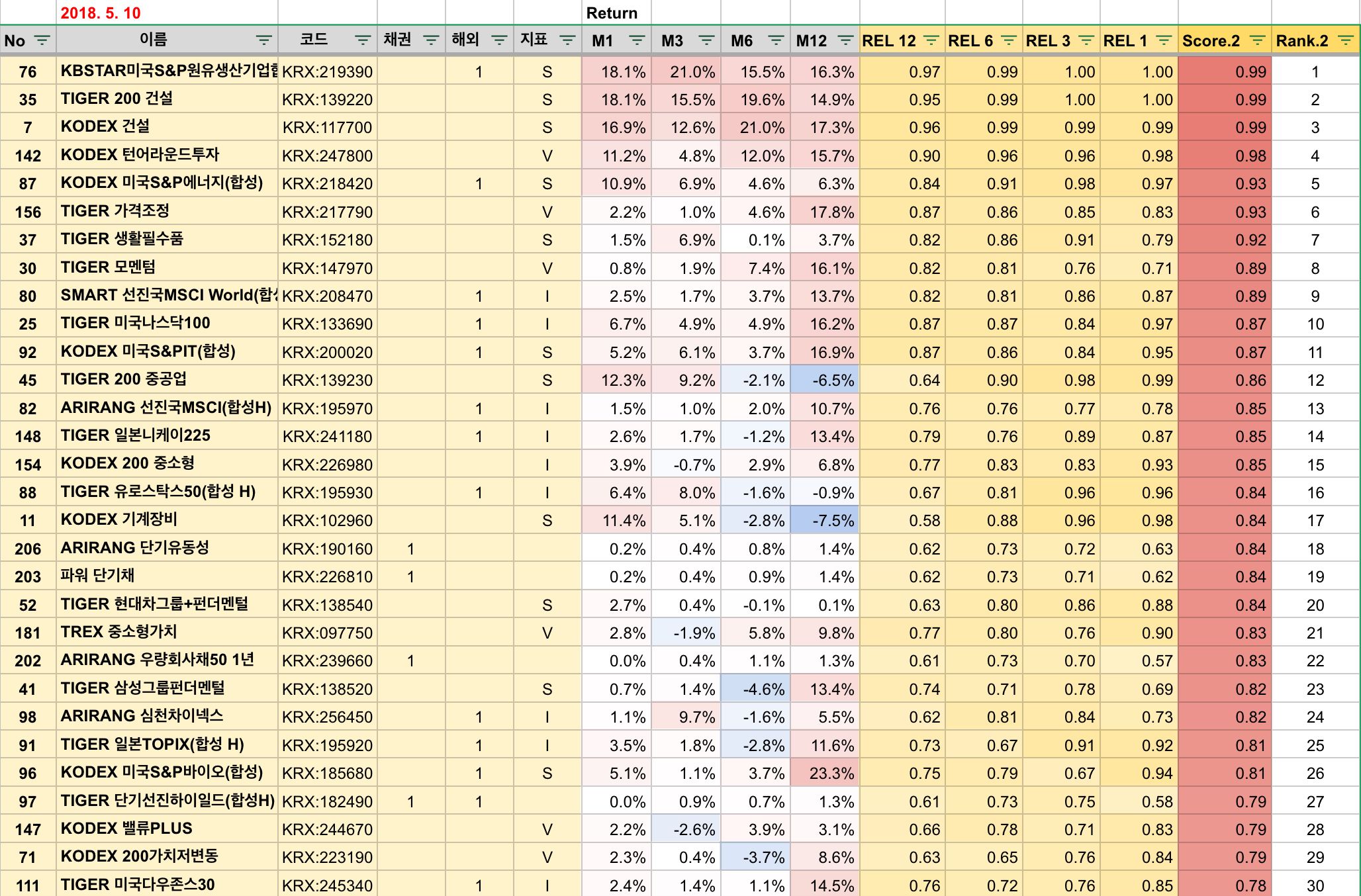 ETF 투자 지표 (2018.5.10)