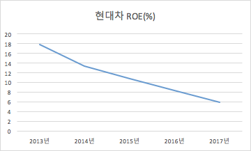 위 그래프는 현대차의 5년간 ROE 추이를 나타낸 그래프입니다.