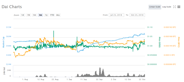 “그리고 $1를 목표로 소프트페그(soft peg) 를 하는 스테이블 코인 다이 (DAI)”