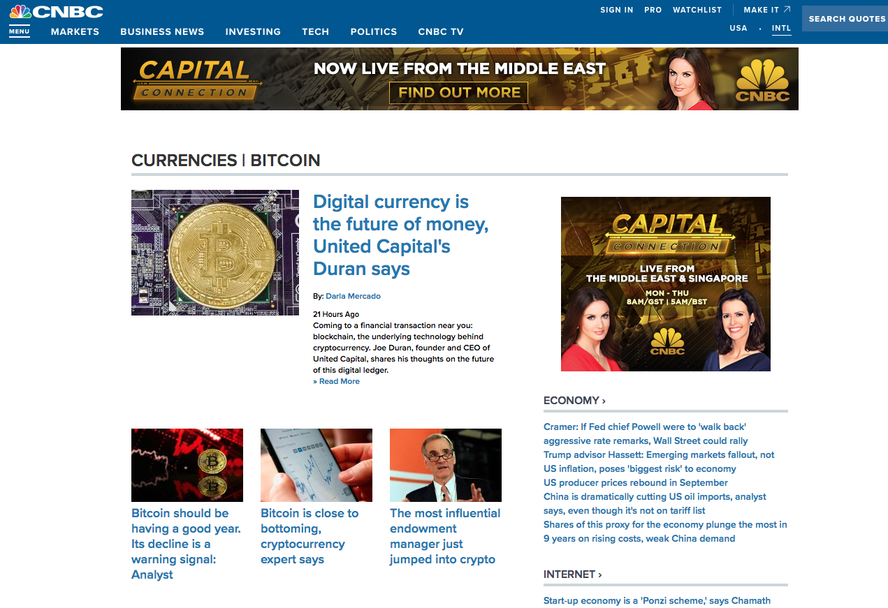 CNBC 비트코인 : CNBC 언론사 비트코인 섹션
