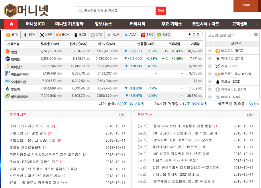 암호화폐 정보 소스 얻을 수 있는 사이트들