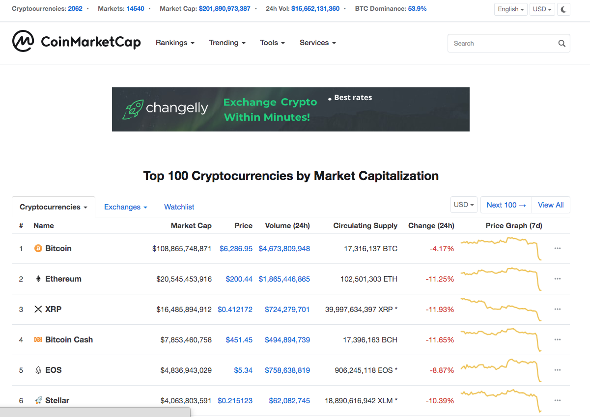 Coinmarketcap : 암호화폐 차트 및 거래소 정보