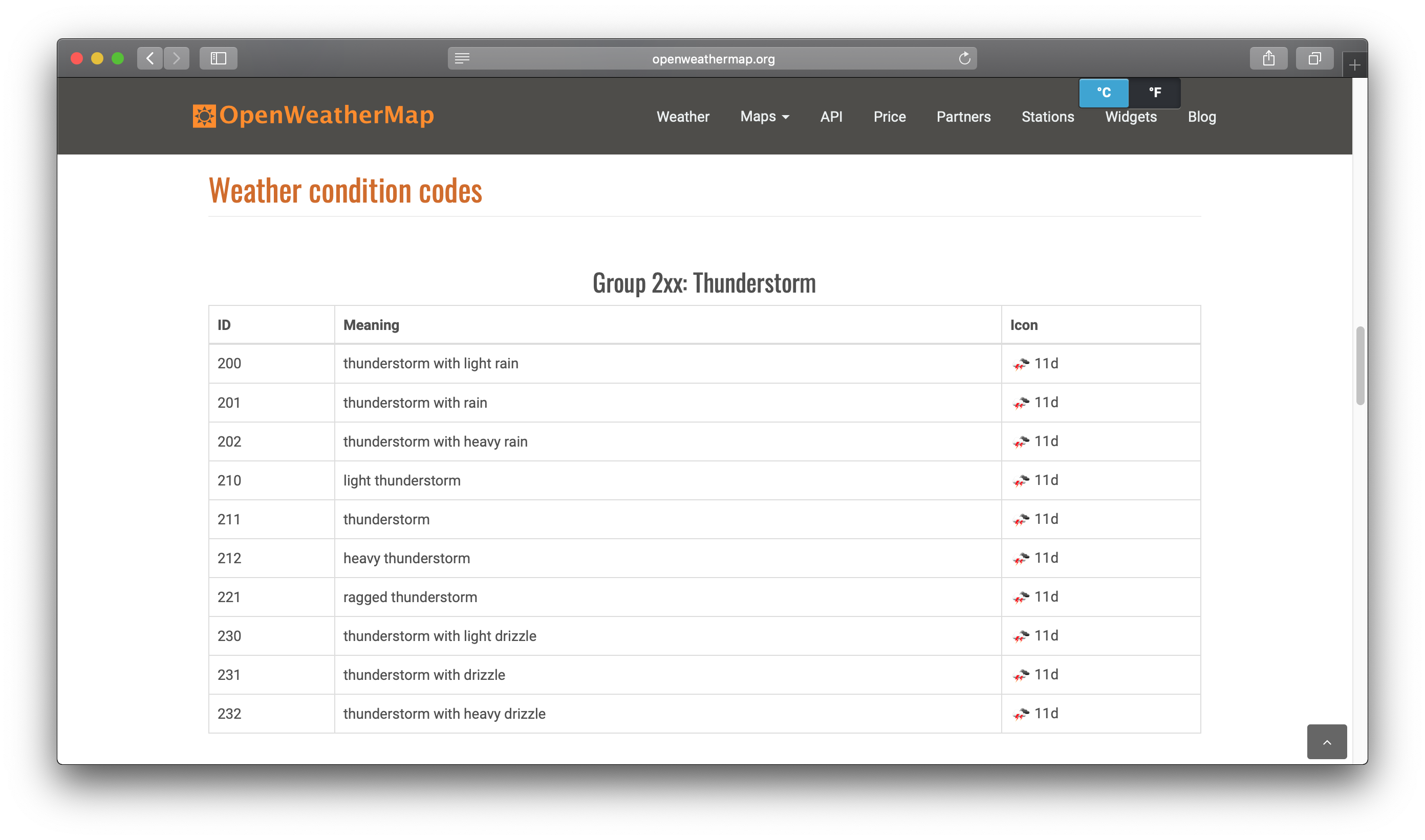 아래 openweathermap 사이트에서 날씨 그룹을 확인해 보자.