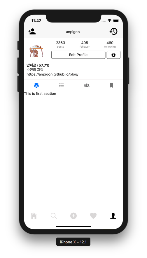 아래와 같이 프로필 화면에 아이콘 버튼 4개가 나타났습니다.