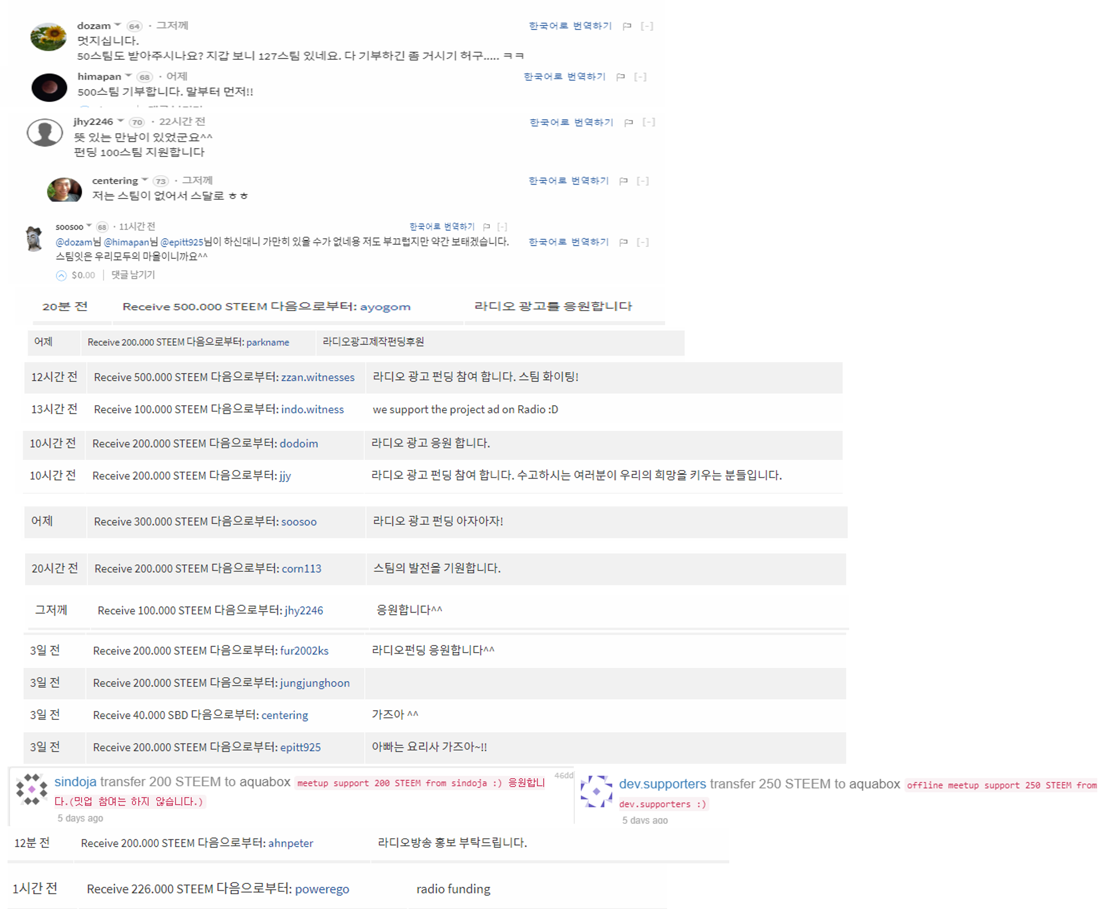 밤새 많은 분들이 라디오 펀딩에 참여해주셨습니다.