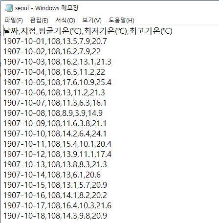 [기초] 파이썬#1-1 (날씨 데이터를 갖고 놀아보자~)