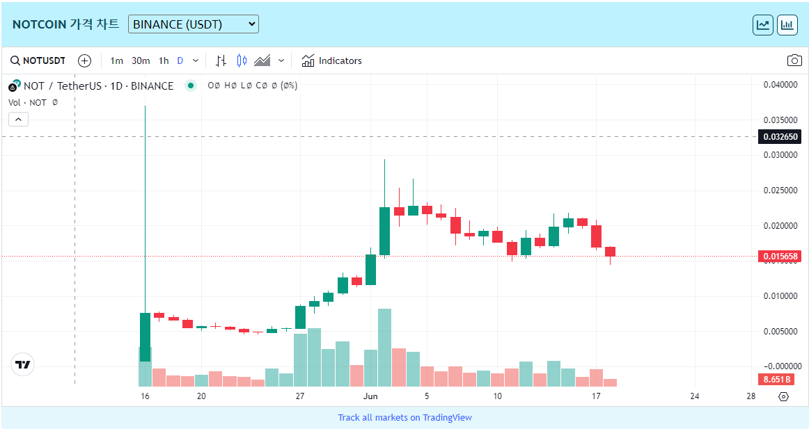 6월18일 NOT코인ariana123 (53)in #kr • 2 years ago 6월18일의 NOT코인의 현재 데일리 봉이다. 많이 무너진 상태인데 정말 슬프다... 코인 시장이 한 동안은 우울 할 것 같은 기분이 든다. 오늘의 NOT코인 일기 끝! #krsuccess #altcoin #notcoin #not