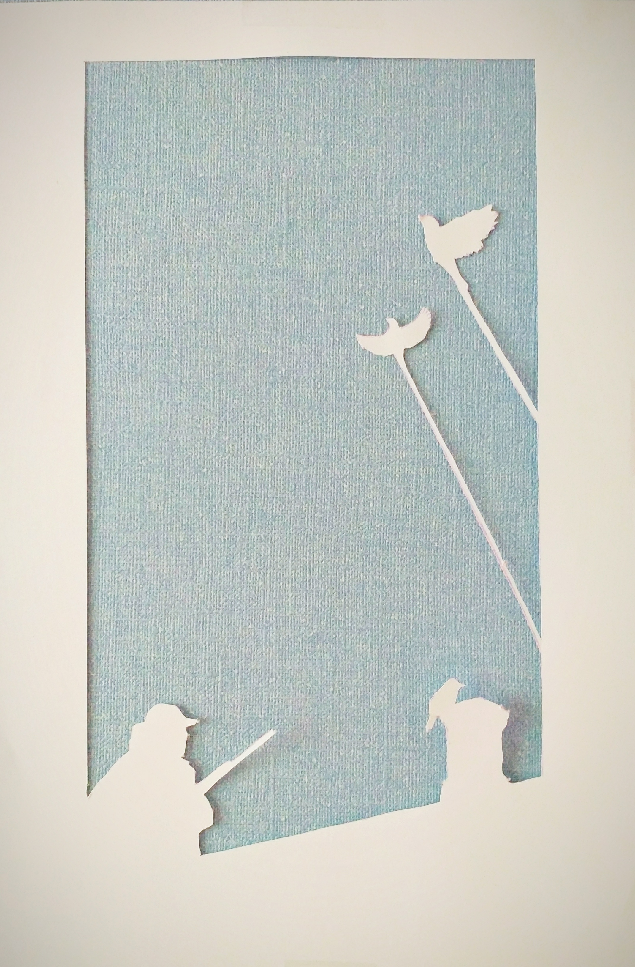 포수가 앉아있는 새를 겨누고 있는 사이 멀리 날라가는 새의 모습을 종이로 직접 표현해주셨습니다. 주제에 맞는 창작활동으로 높은 점수를 받아 우수 수상작으로 선정되었습니다.