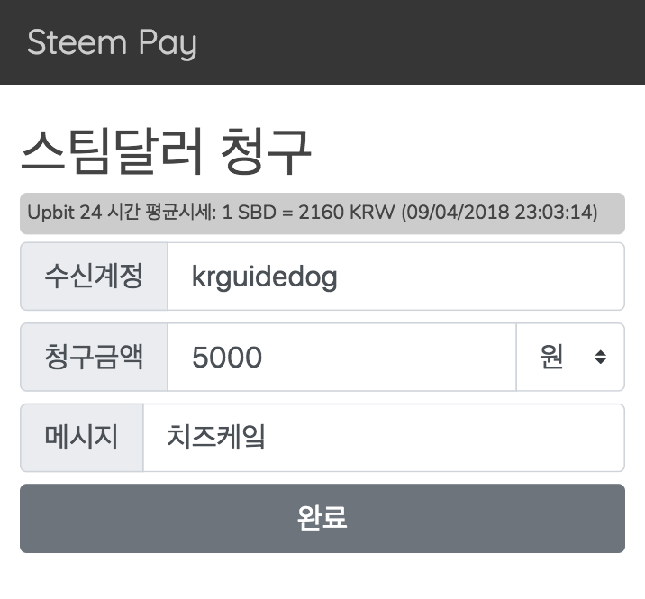 - SBD의 Upbit 24시간 평균가격을 기준으로 원화를 스팀달러로 자동 변환
