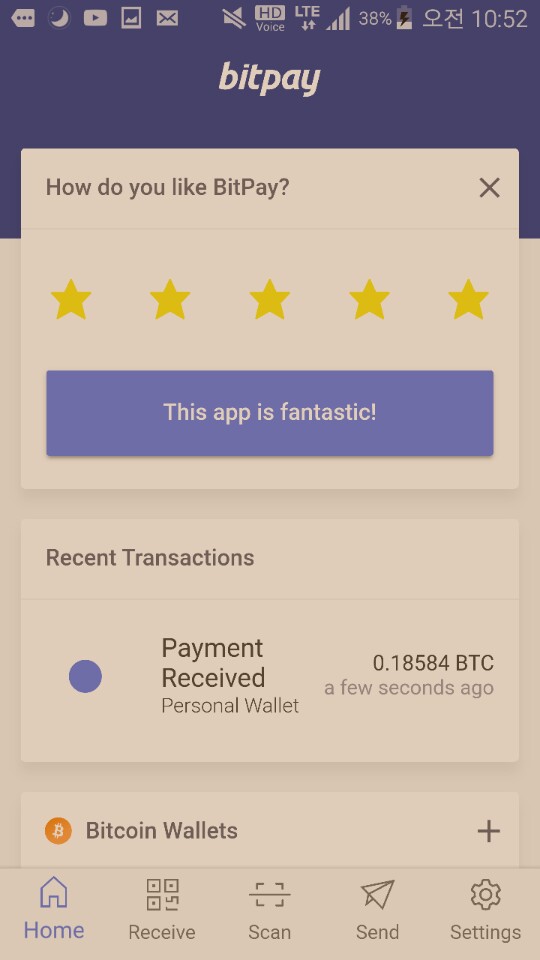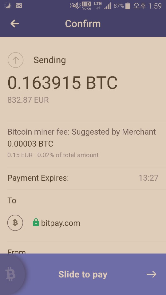 거래소에서 비트페이로 비트코인을 전송하는데 걸리는 시간은 10분 내외였었습니다. 사실 거래소에서 비트페이로 비트코인을 전송하는 것에도 살짝 긴장을 했었는데 별 문제 없이 빠르게 됬던 것 같습니다.