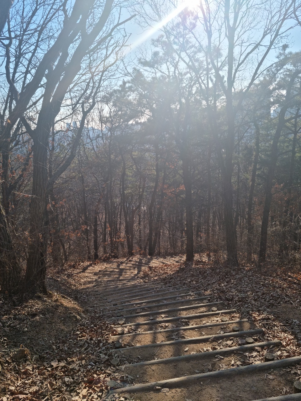 운동을 시작한지도 이제 25일이 지났다. 몸무게 수치의 큰 변화는 없지만 몸이 가벼워진 느낌이다. 높은 산은 아니지만 등산로가 구비된 이 곳을 두 바퀴 정도 걸으면 7천보 정도, 260 칼로리가 소비되는 것으로 나온다. 앞으로도 지속적으로 꾸준히 할 수 있는 힘을 잃지 않기를!!