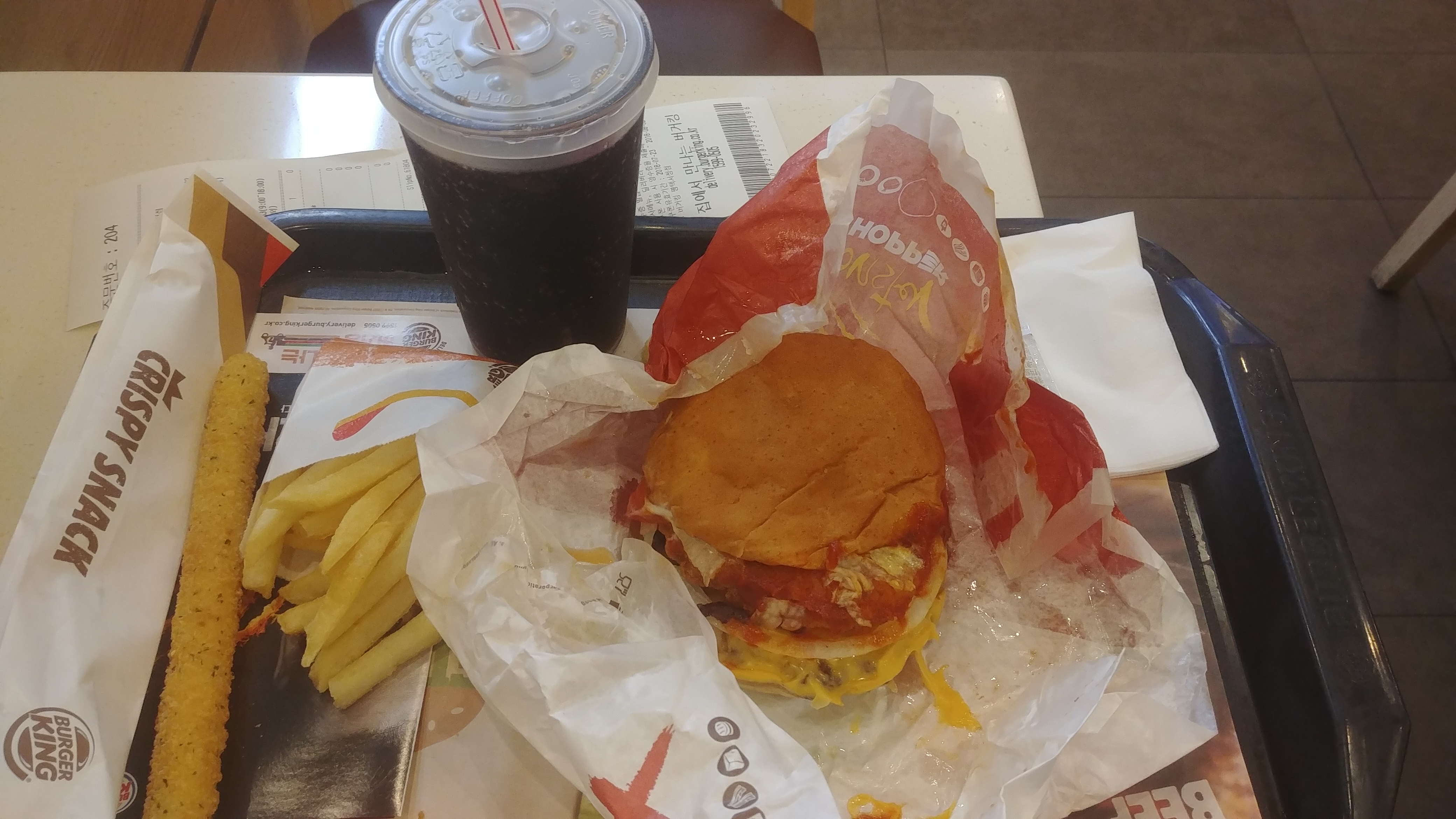 소고기패티와치킨 패티 중간에 베이컨이 있었지만 베이컨 맛을 못느꼈습니다. 소고기와 치킨이 맛을 흡수 해 버렸다고 할까요?자주 먹지는 못할것 같아요 칼로리가 높아서 말이죠 맛있었습니다. 먹고나니 배가 너무 부르더라구요 맛은 괜찮았습니다. 한번 도전해 보세요 여러분 티몬에서 세일 하는중이니 구매하셔서 이용해 보세요