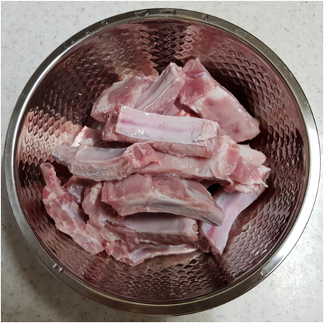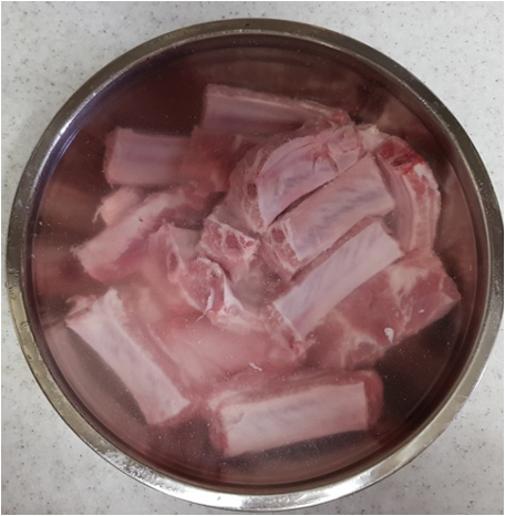 <고기 특유의 냄새를 제거 하기 위해서 핏물을 뺐어요>