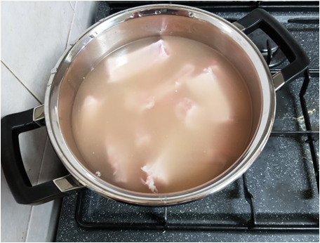 <마찬가지로 고기 냄새를 제거 하고 육질을 부드럽게 하려고 살짝 익혀줬어요^^>