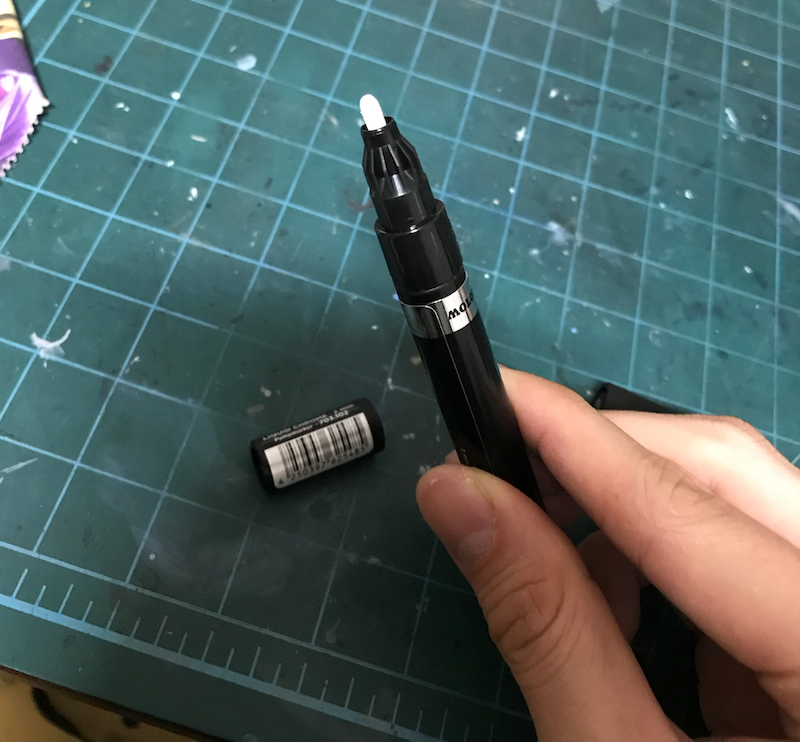 액상이 마르고 나니 표면에 오돌토돌한 입자들이 드러나네요. 그래도 광택자체는 실버 마커보다 훨씬 좋습니다.