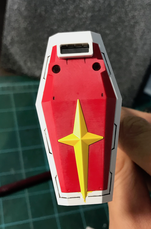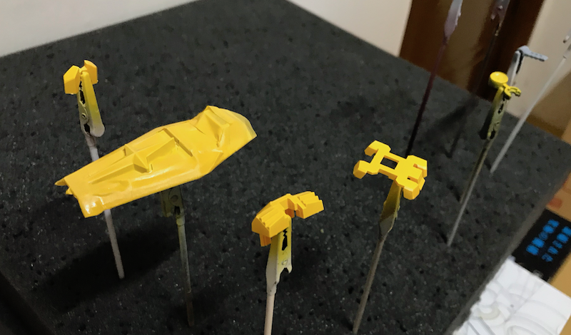 내부를 이미 노란색으로 칠해줬기 때문에, 저렇게 블루택으로 마스킹 한 후 도색을 해줬습니다.