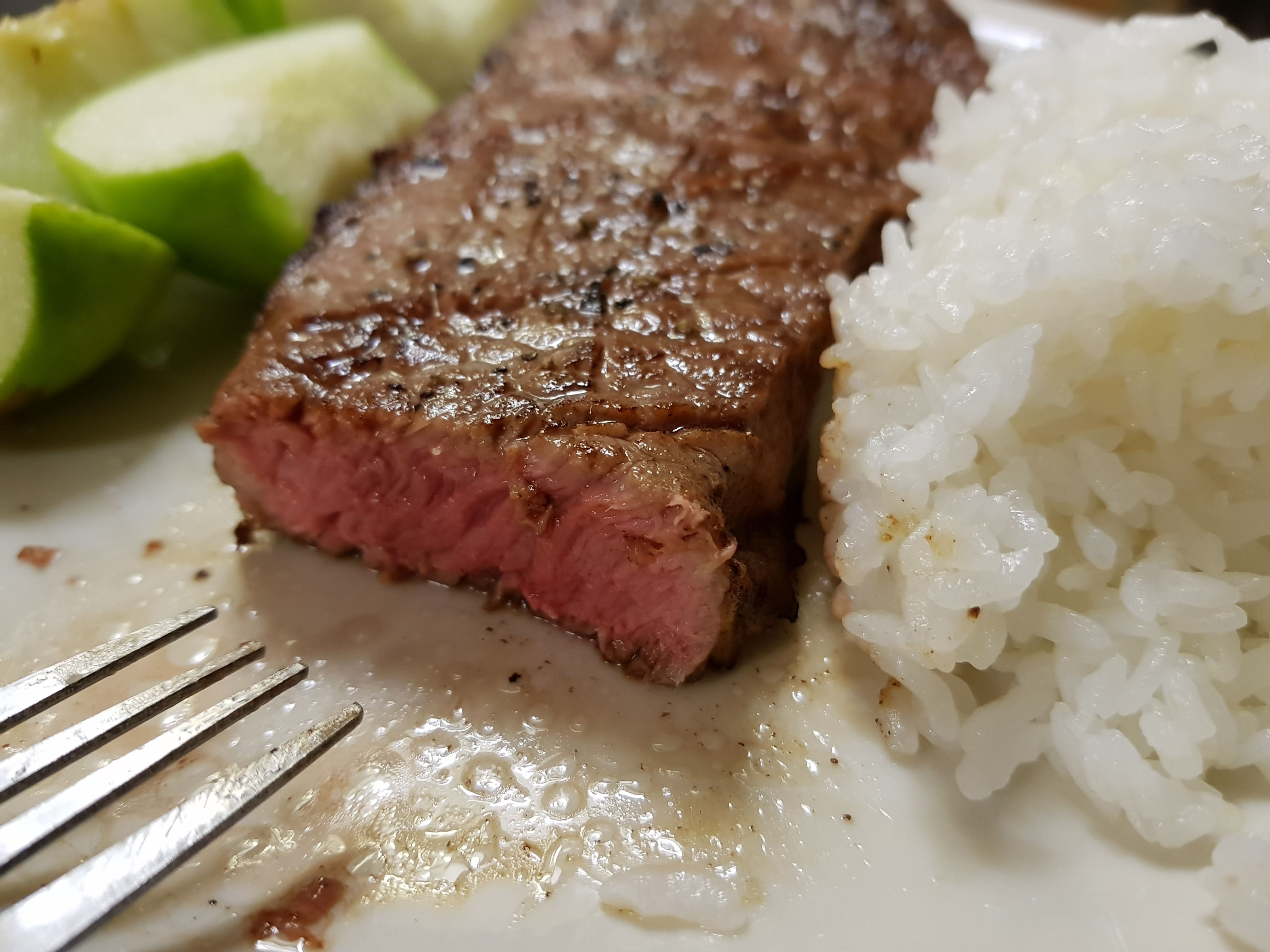 육즙이 팍팍 나오는 레어를 제가 한국에서도 정말 좋아 하는데 제가 했던 저 스테이크는 왠지 겉만 익은 생고기를 먹는 거 같았지만 자기 최면으로 극복 하였습니다. 사진에 저 살아있는 생고기가 보이싶니까?