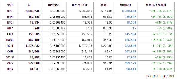 - 비트코인 가격 : 8,857,460원 / 4.18%▼
