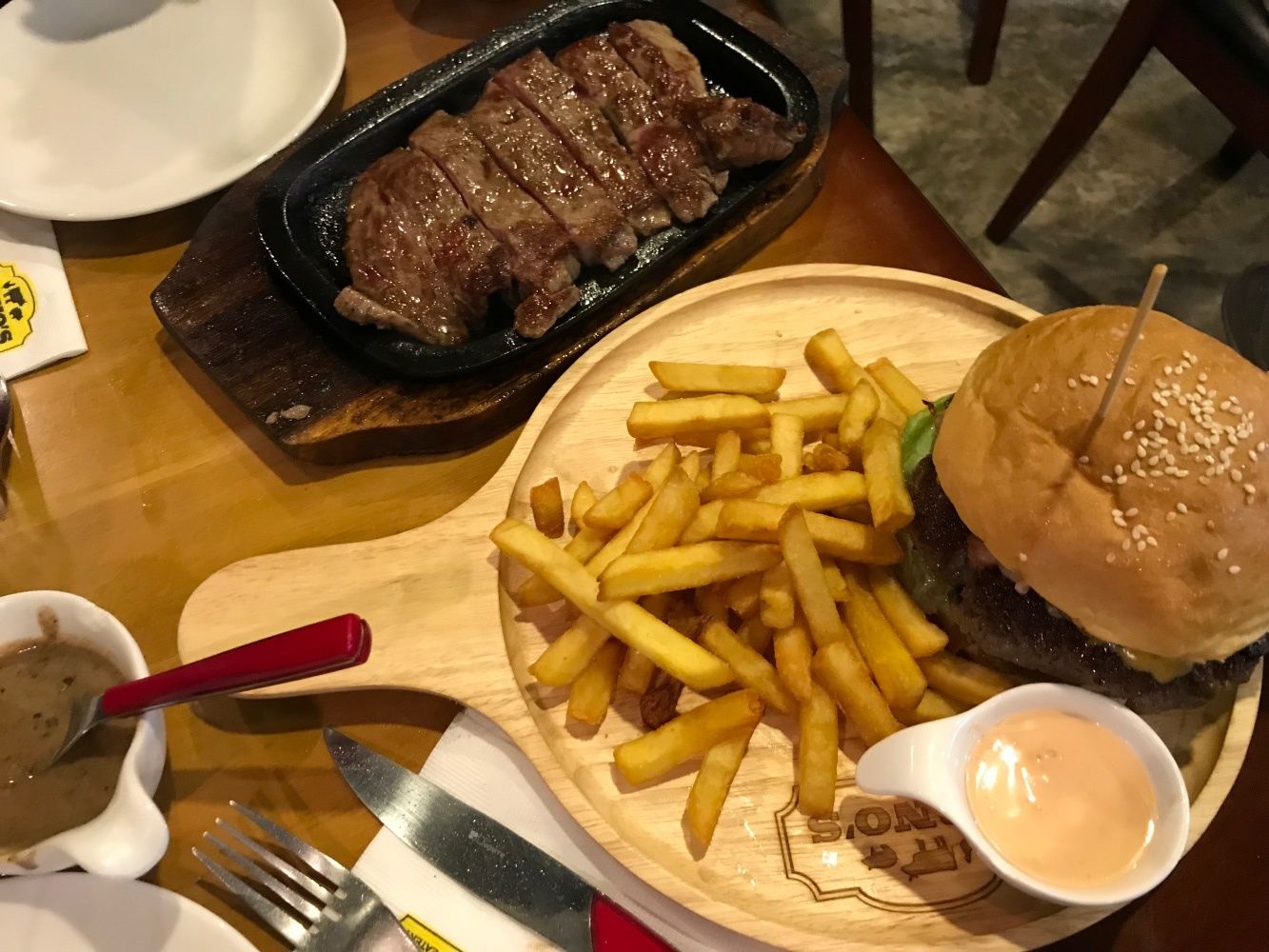 처음에는 주문을 할지 몰라서 어리버리 했었는데 주문한 것은 300g 패티가 들어가있는 햄버거와 45일간 드라이에이징 한 채끝 스테이크였습니다.